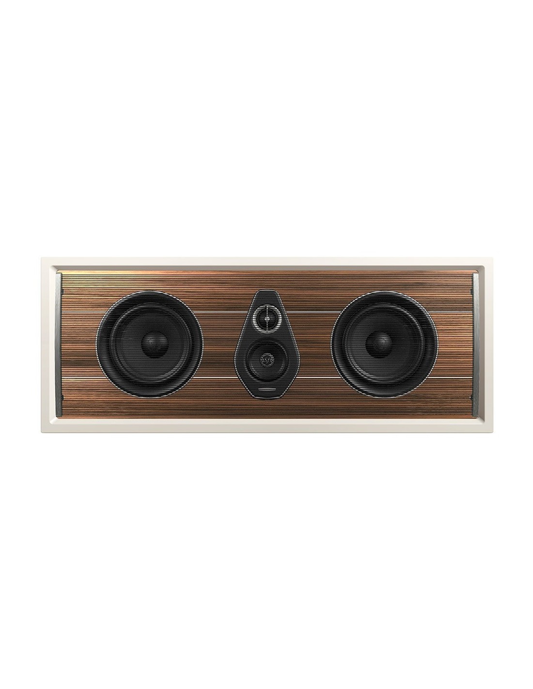 KIT ESCLUSIVO DEDICATO AL DIFFUSORE DA INCASSO A PARETE PALLADIO LEVEL 6 PL-664 INSTALLATO CON POSIZIONAMENTO ORIENTATO IN ORIZZONTALE, DAL DESIGN PENSATO PER ARREDARE PIUTTOSTO CHE PER "SCOMPARIRE", COMPOSTO DA UN PANNELLO FRONTALE IN LEGNO DI NOCE NATURALE CON INTARSI IN ACERO FATTI A MANO, DALLE ICONICHE MASCHERINE SONUS FABER CON FILI ELASTICI E DA UNA CORNICE MAGNETICA VERNICIABILE - FINITURA WALNUT (NOCE)