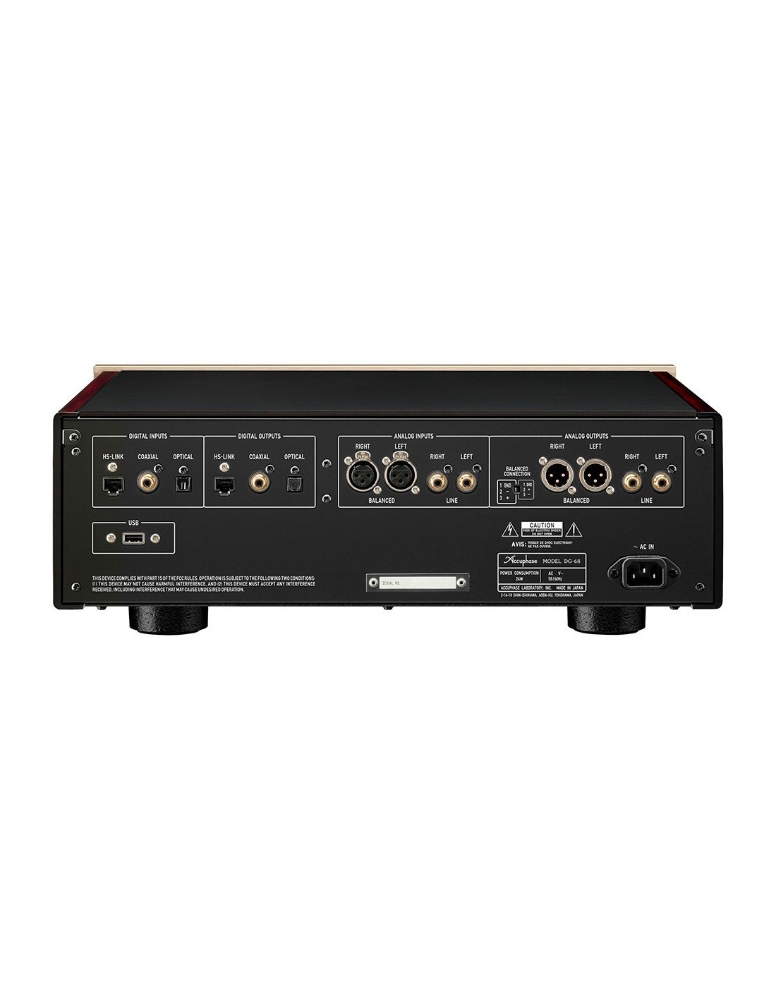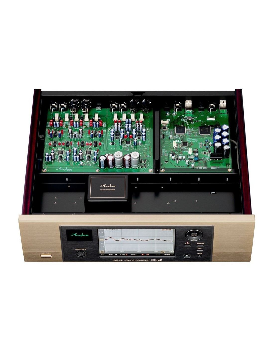 ELETTRONICA DIGITALE ULTRA AVANZATA DI EQUALIZZAZIONE E DI CORREZIONE ACUSTICA AMBIENTALE HIGH END, QUINTA GENERAZIONE DELLA SERIE ACCUPHASE DIGITAL VOICING EQUALIZER - TRE FUNZIONALITA' DISTINTE E COMPLEMENTARI, SFRUTTABILI ANCHE SEPARATAMENTE: COMPENSAZIONE DEL CAMPO SONORO (SOUND FIELD COMPENSATION) PER OTTIMIZZARE LE PROPRIETA' ACUSTICHE DELL'AMBIENTE D'ASCOLTO, EQUALIZZATORE GRAFICO PER CALIBRARE INDIVIDUALMENTE LE SINGOLE BANDE DI FREQUENZA E PERFEZIONARE LE CARATTERISTICHE TIMBRICHE DEL SEGNALE MUSICALE, ANALIZZATORE DI SPETTRO IN TEMPO REALE PER VISUALIZZARE LA DISTRIBUZIONE SPETTRALE DELLE FREQUENZE - COLLEGABILE DIRETTAMENTE NEL DOMINIO DIGITALE TRA UNA MECCANICA SACD/CD E UN CONVERTITORE DAC (O TRA LE USCITE E GLI INGRESSI DIGITALI DI UN LETTORE SACD/CD INTEGRATO) OPPURE, IN ANALOGICO: TRA UN PREAMPLIFICATORE E UN FINALE DI POTENZA, NEL RECORDER LOOP (TRA I CONNETTORI REC E PLAY) DI UN PREAMPLIFICATORE O DI UN AMPLIFICATORE INTEGRATO, TRA IL PRE OUT E L'AMP IN DI UN AMPLIFICATORE INTEGRATO DOTATO DI TALI CONNESSIONI - PROGETTATO PER OFFRIRE LA MASSIMA SEMPLICITA' D'UTILIZZO, CON MENU GUIDATI INTUITIVI E AD ALTA LEGGIBILITA' - DISPLAY TOUCH A COLORI LCD IPS AD ALTA DEFINIZIONE (CON LUMINOSITA' REGOLABILE E DISATTIVABILE) CON APPOSITA PENNA STILO IN DOTAZIONE PER DISEGNARE QUALUNQUE CURVA DI FREQUENZA DIRETTAMENTE SULLO SCHERMO - ACCURATISSIMO PROCESSORE DIGITALE A VIRGOLA MOBILE DSP A 40 BIT ANALOG DEVICES ADSP-21489 - CONVERTITORE A/D (ANALOGICO / DIGITALE) A 32 BIT / 352,4 KHZ ASAHI KASEI AK5578EN IN CONFIGURAZIONE QUADRUPLA PARALLELA PER CIASCUN CANALE - CONVERTITORE D/A (DIGITALE / ANALOGICO) A 32 BIT / 384 KHZ ESS TECHNOLOGY ES9028PRO IN CONFIGURAZIONE MDS+ (MULTIPLE DELTA-SIGMA) CON 8 CICRUITI PILOTATI IN PARALLELO PER CIASCUN CANALE - CIRCUITO PROPRIETARIO DI CANCELLAZIONE DELLE DISTORSIONI ANCC (ACCUPHASE NOISE AND DISTORTION CANCELLING CIRCUIT) NEGLI STADI DI CONVERSIONE A/D E D/A - FUNZIONE AUTOMATICA SMOOTH VOICING CAPACE DI PREVENIRE ECCESSI DI CORREZIONE RILEVANDO LE CAPACITA' DI RIPRODUZIONE DELLE BASSE FREQUENZE DEI DIFFUSORI E COMPENSANDO LE DIFFERENZE DI RISPOSTA DEI CANALI DESTRO E SINISTRO, GARANTENDO UNA CURVA DI SEGNALE IN AMBIENTE LINEARE - FREQUENZA DI CAMPIONAMENTO ANALOGICO E GUADAGNO IN INGRESSO REGOLABILI - LIVELLI D'USCITA E BILANCIAMENTO CANALI AUTOMATICI O REGOLABILI MANUALMENTE - FILTRO SUBSONICO ATTIVABILE / DISATTIVABILE - 30 PATTERN DI MEMORIA INTERNA LIBERAMENTE PROGRAMMABILI E RINOMINABILI PER SALVARE LE RILEVAZIONI E LE REGOLAZIONI - IMPOSTAZIONI E SCREENSHOT ARCHIVIABILI E RICARICABILI SU/DA DISPOSITIVI DI MEMORIA USB ESTERNI - INGRESSI E USCITE DIGITALI: IN/OUT HS-LINK VER. 2 (RETROCOMPATIBILE) RJ45 (DSD FINO A 5,6 MHZ, PCM FINO A 32 BIT / 384 KHZ), IN/OUT S/PDIF COASSIALI ELETTRICI RCA (PCM FINO A 24 BIT / 192 KHZ), IN/OUT OTTICI TOSLINK (PCM FINO A 24 BIT / 96 KHZ) - INGRESSI E USCITE ANALOGICI: IN/OUT BILANCIATI L/R XLR, IN/OUT SBILANCIATI L/R RCA - RISPOSTA IN FREQUENZA 0,5 HZ - 50 KHZ - DISTORSIONE ARMONICA TOTALE + RUMORE (THD + NOISE) 0,0007% - MICROFONO DI MISURAZIONE AM-68 E TELECOMANDO IN DOTAZIONE - DIMENSIONI (L X A X P): 465 MM X 161 MM X 396 MM - PESO: 14,9 KG