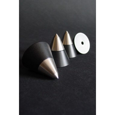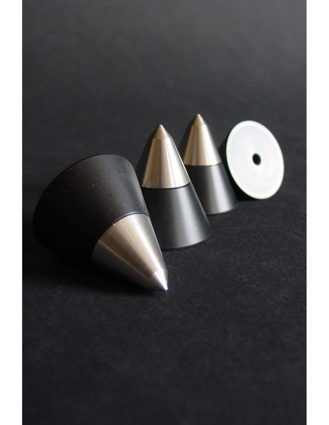 Coni speciali in polimero con punte in acciaio, adatti per elettroniche e diffusori. Set di quattro pezzi.