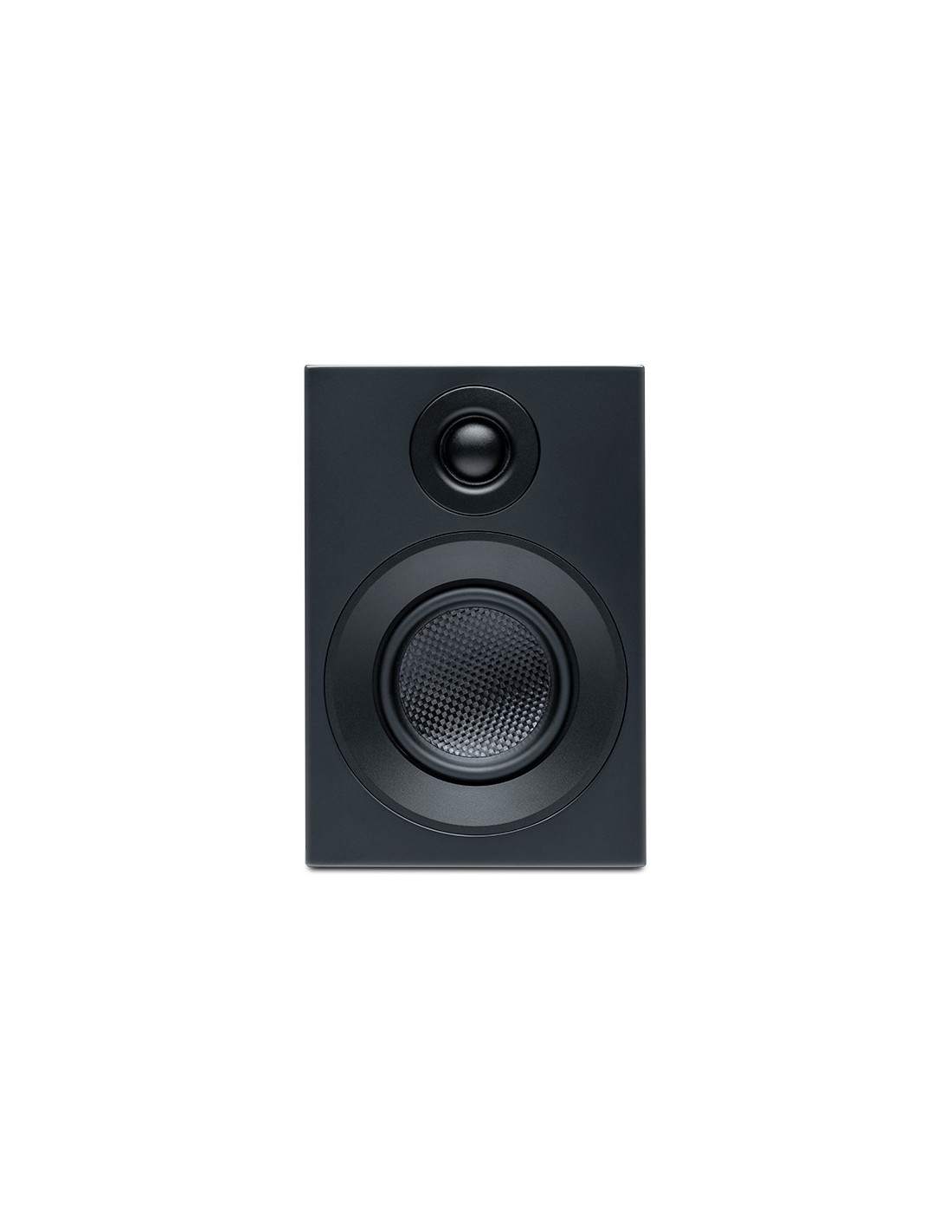 Diffusore a 2 vie da libreria. Bass reflex posteriore. Woofer da 80mm in composito di carbonio/fibra di vetro e tweeter da 19mm con cupola in seta. Potenza da 10 a 100W. Impedenza 4 ohm. Risposta in frequenza: 83Hz-20KHz. Sensibilità: 85dB. Cabinet in MDF. Predisposta posteriormente per staffa a muro SB3 (opzionale). Griglia frontale con attacchi magnetici. Dimensioni(LxAxP): 106x160x152mm.