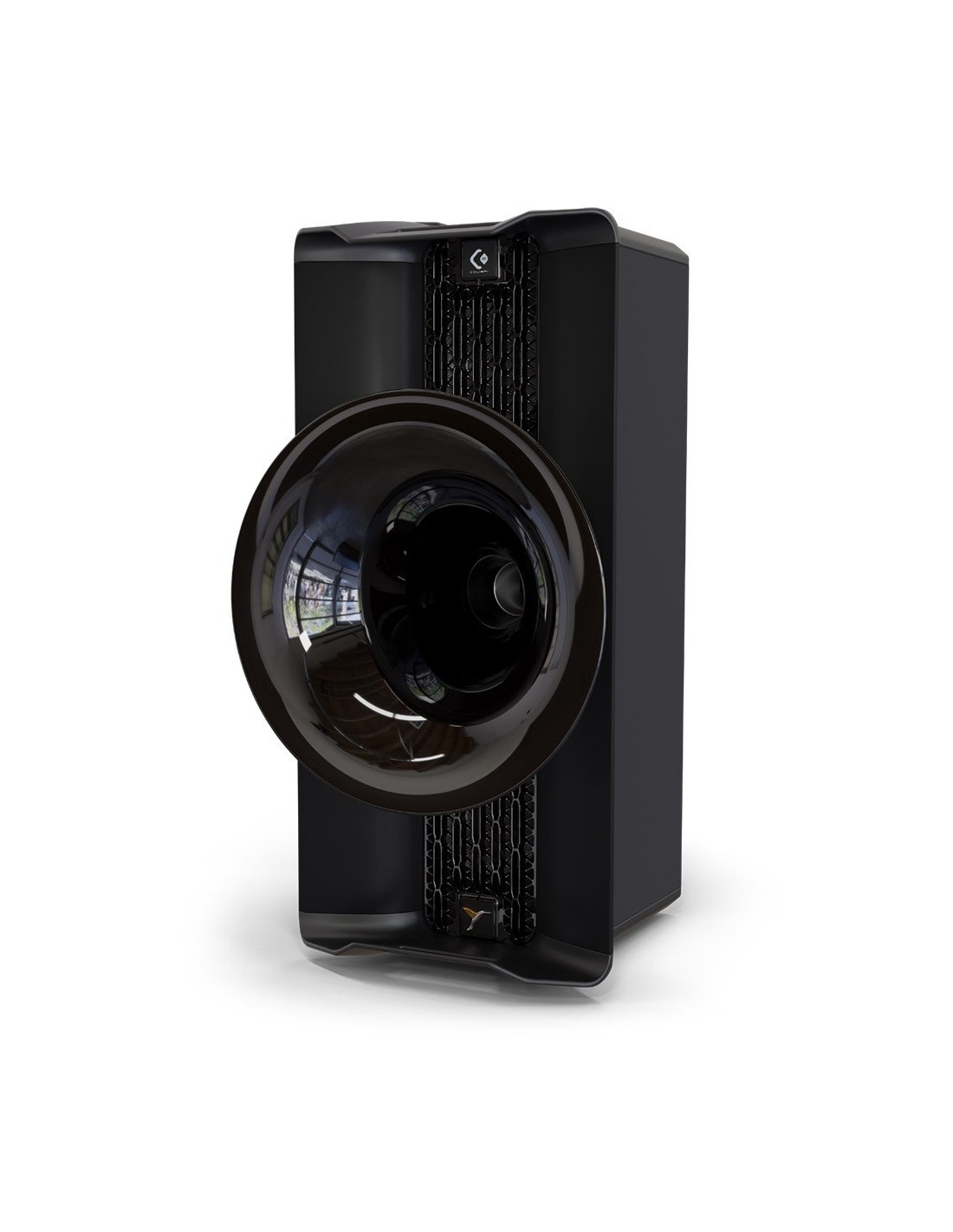 - finitura Black: cabinet di colore nero satinato, tromba sferica nero laccato, top e base nero satinato, gola della tromba in alluminio anodizzato nero, griglia ottagonale nero satinato;