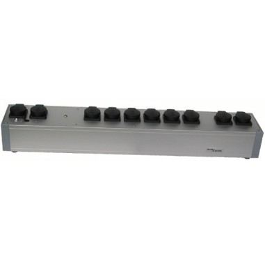 Sistema multipresa di corrente 2 uscite con separazione galvanica 2 uscite 16 A non filtrate 6 prese Schuko Struttura amagnetica in alluminio anodizzato Connettore di ingresso IEC Senza cavo di alimentazione Peso: 7,5 kg Dimensioni: 76(L)x13(P)x12(H) cm
