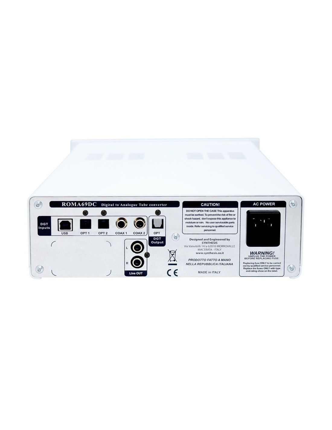 CONVERTITORE DIGITALE/ANALOGICO VALVOLARE - PROGETTATO E COSTRUITO ARTIGIANALMENTE A MANO IN ITALIA - DAC ASAHI KASEI AK4495S 32 BIT / 768 KHZ - ALIMENTAZIONE STABILIZZATA MULTI SEZIONE - TRASFORMATORE TOROIDALE SOVRADIMENSIONATO DOTATO DI SCHERMO ELETTROSTATICO - CONDENSATORI IN POLIPROPILENE METALIZZATO SELEZIONATI NEL PERCORSO DI SEGNALE - STADIO D'USCITA CON 2X VALVOLE 6DJ8/ECC88 (1X CANALE) - RIPRODUZIONE FORMATI DIGITALI DSD FINO A DSD128 5,6 MHZ (USB), PCM FINO A 32 BIT / 384 KHZ (USB) E 24 BIT / 192 KHZ (COASSIALE E OTTICO) - 1 INGRESSO DIGITALE USB TYPE B ASINCRONO - 2 INGRESSI DIGITALI S/PDIF COASSIALI ELETTRICI RCA - 2 INGRESSI DIGITALI OTTICI TOSLINK - 1 USCITA DIGITALE OTTICA TOSLINK - USCITA CUFFIE AD ALTA FEDELTA` - CONTROLLO VOLUME - FINITURA CON FRONTALE IN LEGNO - DIMENSIONI (L X A X P) 260 X 95 X 380 MM - PESO 5 KG