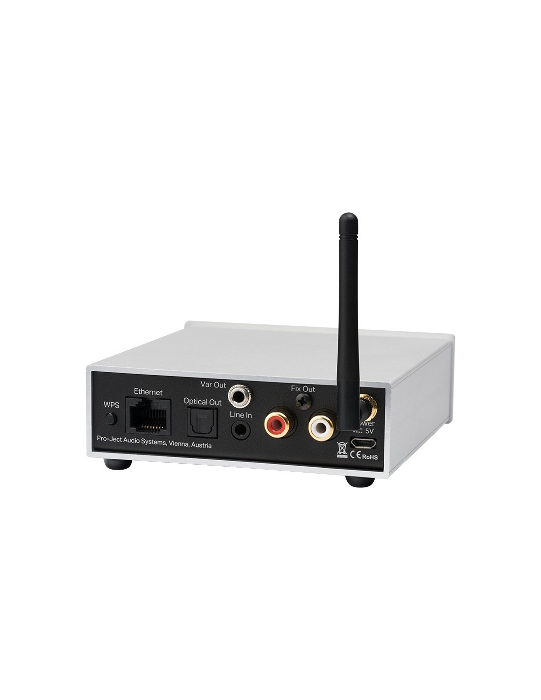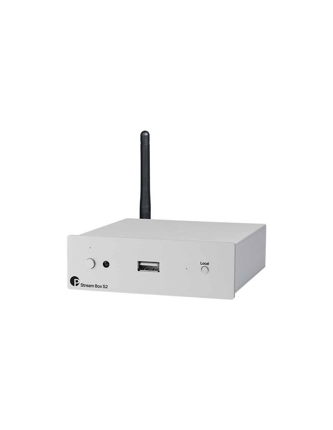 Streamer musicale di rete. Formati audio MP3, FLAC (24/192), WAV, AAC, ALAC, APE. Supporta Spotify Connect, Tidal e Napster. AirPlay. Multi-room. Collegamento Ethernet e Wireless 802.11b/g/n. UPnP & DLNA per streaming file da PC o Mac. DAC ESS9023. Ingresso USB frontale. Ingresso linea (jack 3,5mm). Uscita digitali ottica e analogiche fissa (RCA) e variabile (jack 3,5mm). Internet Radio Tunein e iHeart. App di controllo Pro-Ject Stream S2 iOs e Android. Possibilità di utilizzarne due in modalità mono. Dimensioni: 103x37x122mm (LxAxP).