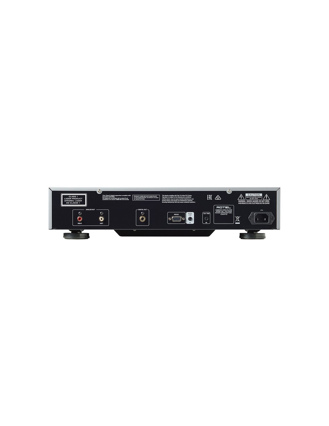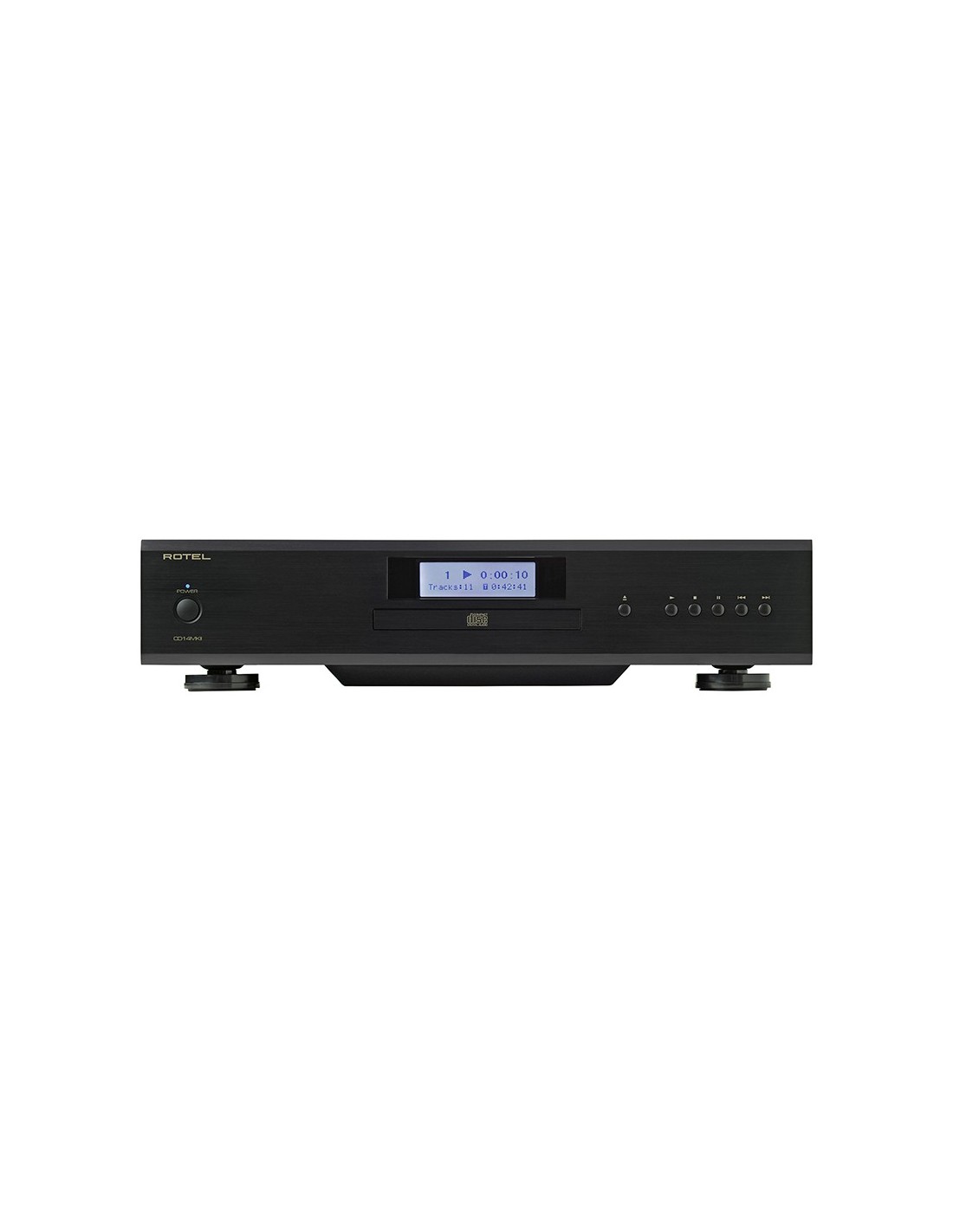 Lettore CD con sofisticata meccanica di alta precisione. Sistema di conversione D/A Texas Instruments serie Premium a 32bit/384KHz. Filtri d'uscita analogici custom. Sezione di alimentazione indipendente per circuiti digitali e analogici. Condensatori ultra-veloci. Uscita digitale coassiale e uscita analogica. Display grafico VFD su 2 righe. Comando 12V trigger. RS-232. Rotel Link. Telecomando in dotazione.