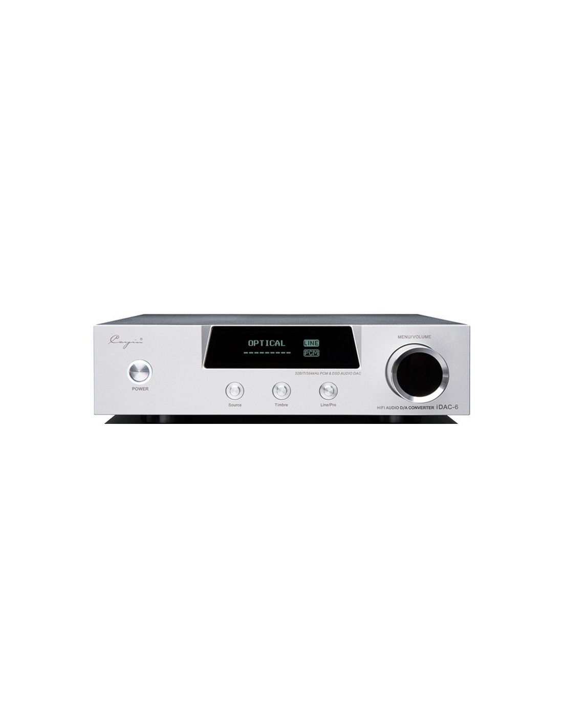 Valve D/A DAC converter, dual AKM AK4490 32-bit/384 kHz and DSD64 and DSD128. Inputs: asynchronous USB, AES, coaxial, optical. Outputs: unbalanced RCA and balanced XLR.