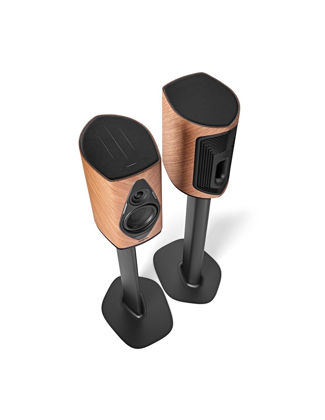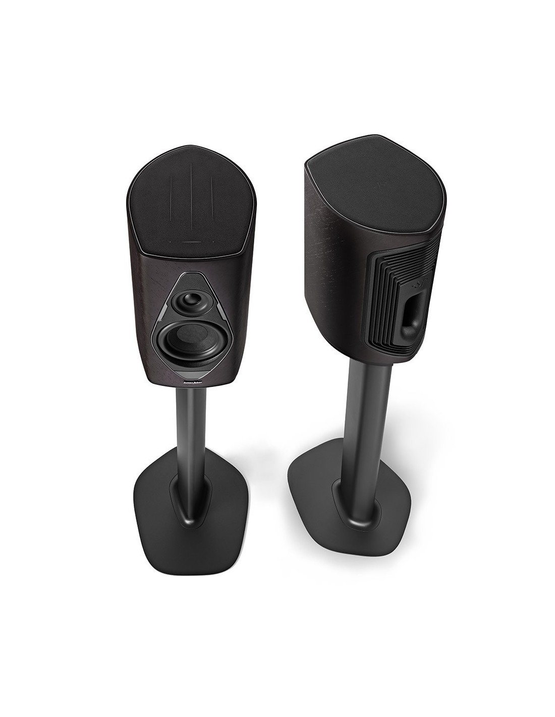 Stand in metallo dedicati ai diffusori del sistema Duetto, dotati di appositi vani per raccogliere ordinatamente e nascondere i cavi che possono essere collegati al sistema - dimensioni (L x A x P) 298 x 740 x 371 mm - peso 7,8 Kg - prezzo riferito ad una coppia di stand