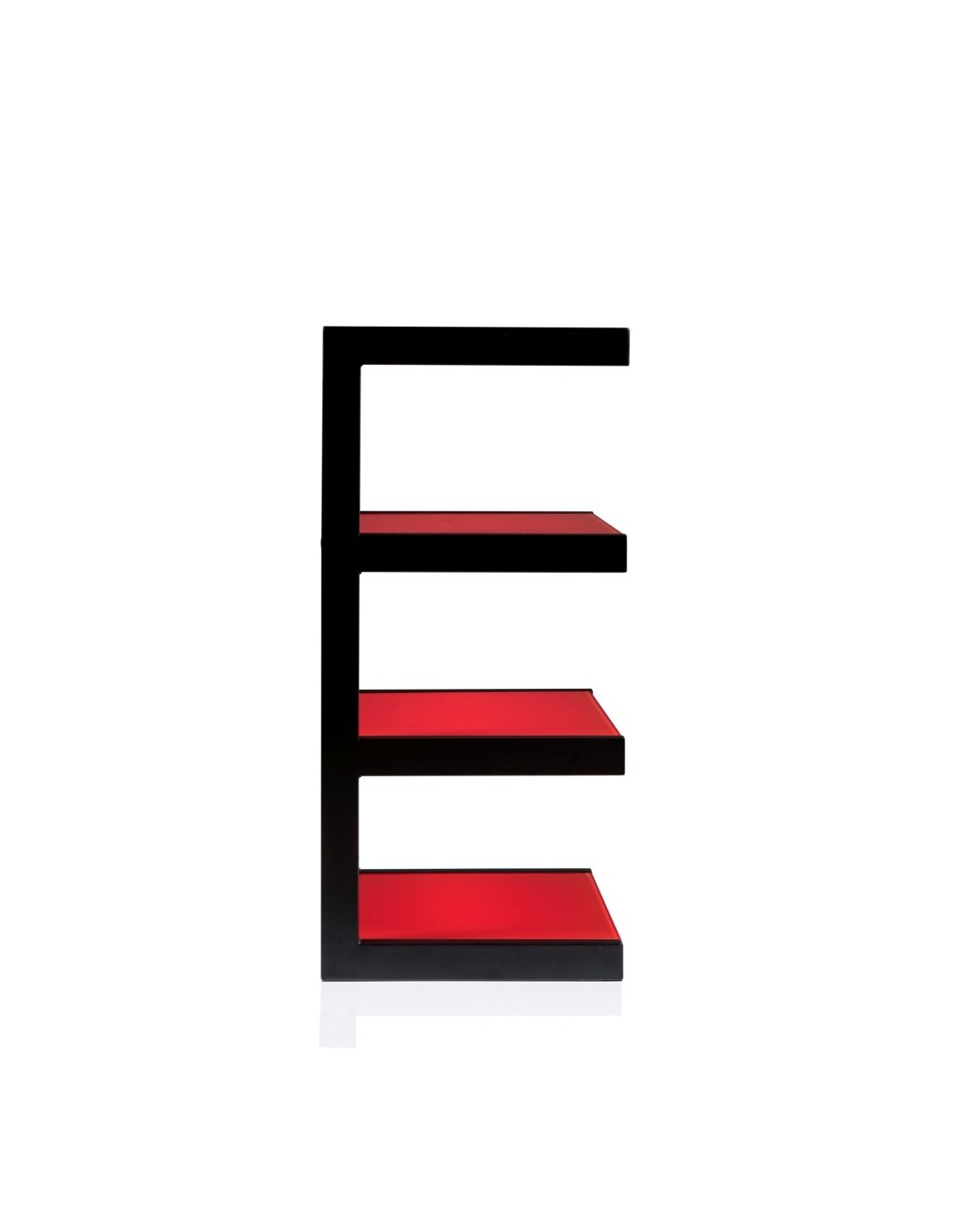 • Finiture: struttura nera e vetro nero; struttura nera e vetro rosso; struttura nera e ripiani in legno noce; struttura bianca e ripiani in legno quercia