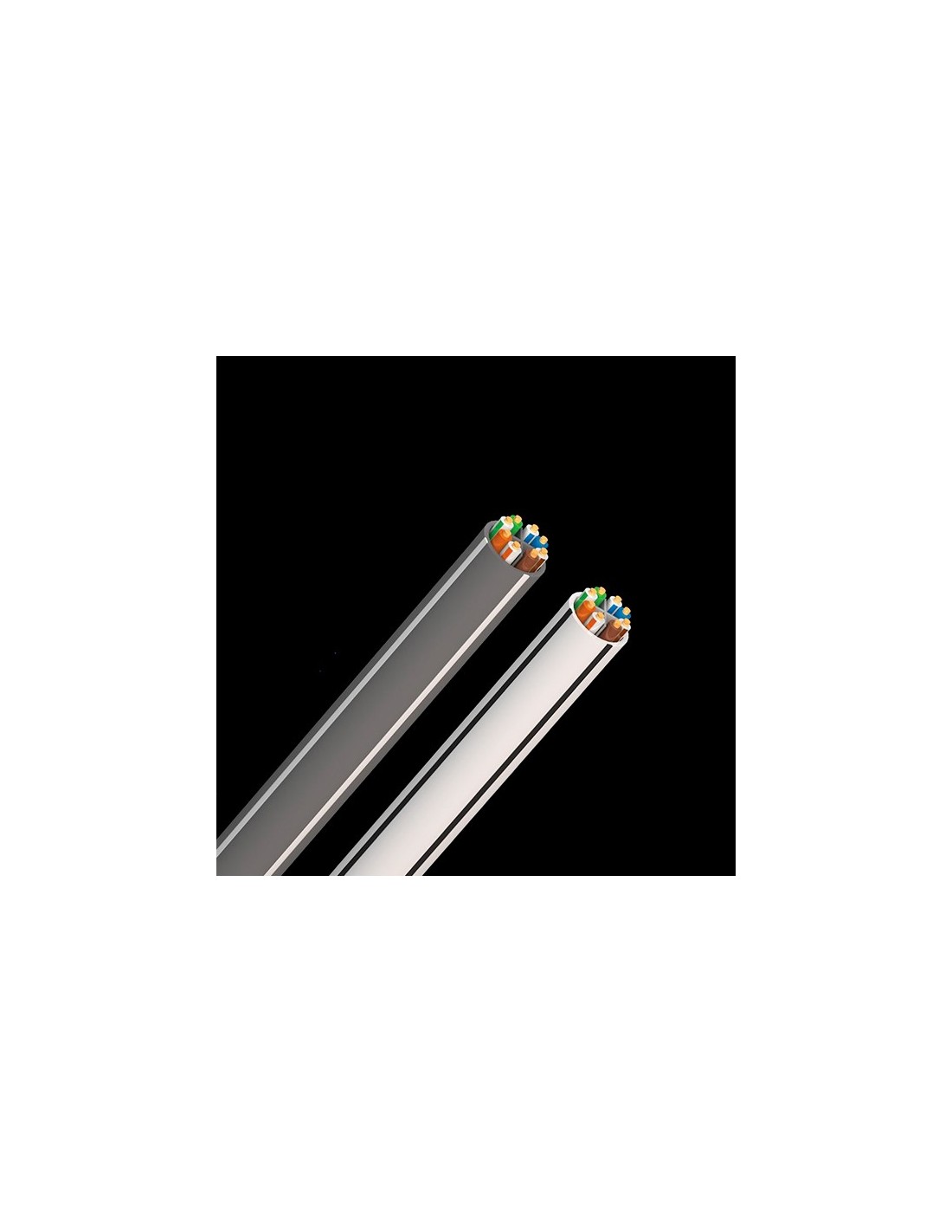 Metal: Solid LGCShield: N/AGauge: 23 AWGDielectric: Solid High-Density PolyethyleneJacket: White PVC with Black Stripes or Dark Gray PVC with White StripesRecommended Connector: CAT600 DCP