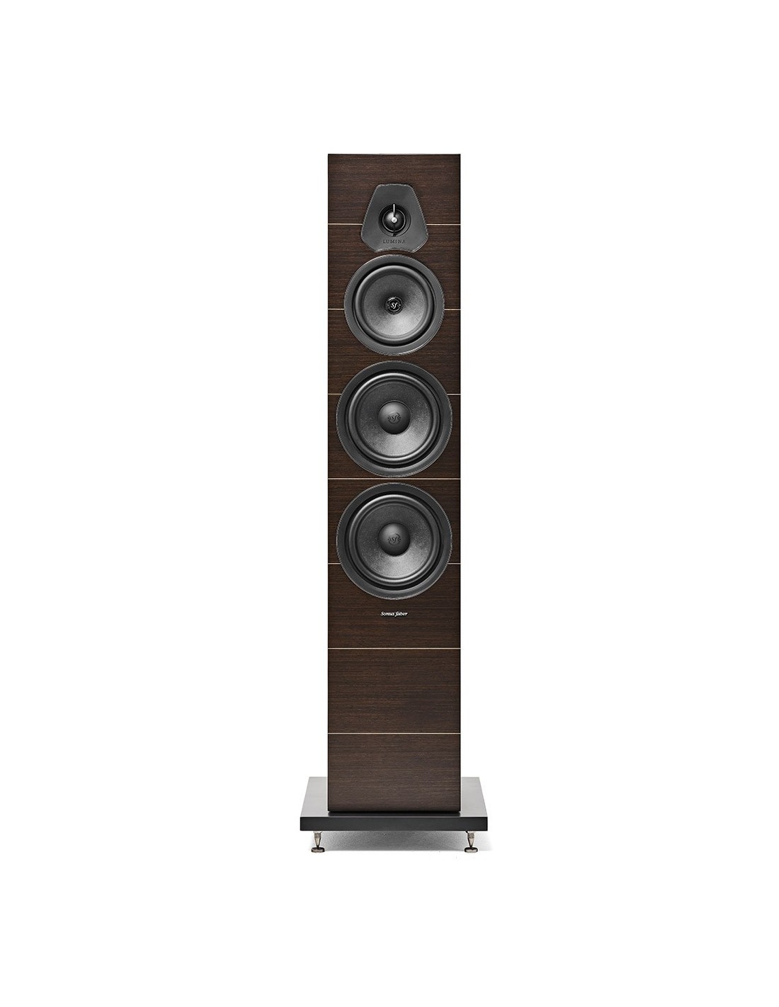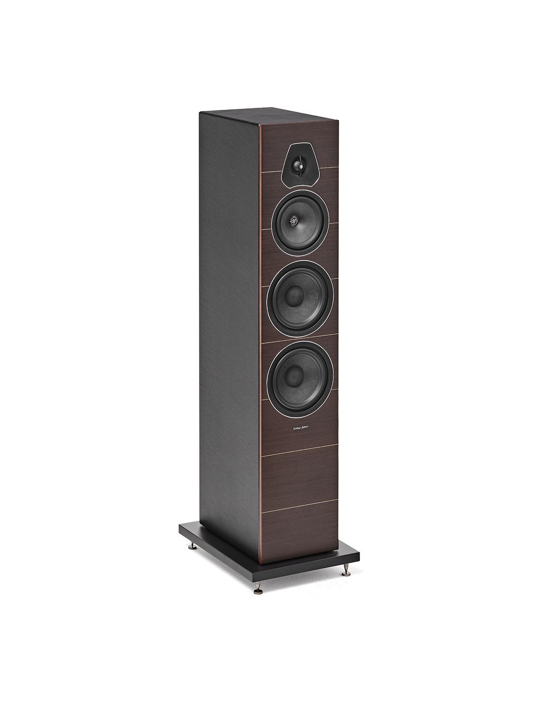 DIFFUSORE DA PAVIMENTO BASS REFLEX A 3 VIE, PROGETTATO E COSTRUITO ARTIGIANALMENTE IN ITALIA - IMPEDENZA NOMINALE 4 OHM - SENSIBILITA' 90 DB SPL (2.83V/1 M) - RISPOSTA IN FREQUENZA 38 HZ - 24 KHZ - POTENZA APPLICABILE CONSIGLIATA COMPRESA TRA 50 E 300 WATT - CAMERA INTERNA A FORMA DI LIUTO DEDICATA AD OSPITARE TWEETER E MIDRANGE, SOLUZIONE PROGETTUALE CHE CONSENTE DI MASSIMIZZARE LA RIGIDITA' STRUTTURALE DEL CABINET, INCENTIVARE LE PRESTAZIONI DELLE FREQUENZE MEDIO-ALTE, MINIMIZZANDO AL CONTEMPO LE ONDE STAZIONARIE - ALTOPARLANTI PROPRIETARI SONUS FABER: TWEETER A CUPOLA MORBIDA DAD (DAMPED APEX DOME) DA 29 MM CON DIAFRAMMA IN SETA TRATTATA A MANO DI MANIFATTURA KURTMUELLER, MIDRANGE DA 150 MM CON CESTELLO IN ALLUMINIO PRESSOFUSO E MEMBRANA IN POLPA DI CELLULOSA E FIBRE NATURALI, 2X WOOFER DA 165 MM CON MEMBRANA IN POLPA DI CELLULOSA E FIBRE NATURALI - SOFISTICATO CROSSOVER ANTI RISONANTE HYBRID IFF-PARACROSS CON RISPOSTA IN AMPIEZZA/FASE CALIBRATA PER OTTENERE PRESTAZIONI SPAZIO/TEMPORALI OTTIMALI, NUOVA INTERPRETAZIONE DELLA TECNOLOGIA IFF (INTERACTIVE FUSION FILTERING) E DEI PRINCIPI FONDAMENTALI DELLA CLASSICA PARACROSS TOPOLOGY, CAPACE DI RIDURRE LE FORZE ELETTROMOTRICI DI RITORNO (BACK EMF) E LA SENSIBILITA' DEL CIRCUITO ALLE INTERFERENZE DA RADIOFREQUENZA, COSTRUITO CON COMPONENTI AUDIOPHILE SELEZIONATI E IMPREZIOSITO DA SPECIALI CONDENSATORI PROPRIETARI DEDICATI - CONDOTTO REFLEX CON SBOCCO INFERIORE, RIVOLTO VERSO IL PAVIMENTO - BASE CON PUNTE CONICHE E SOTTOPUNTE - DOPPIO SET DI TERMINALI PER BI-AMPING E BI-WIRING - CABINET RIVESTITO IN PELLE NATURALE NERA CON PANNELLO FRONTALE DI LEGNO MULTISTRATO IN FINITURA WENGE OPACA CON INSERTI IN ACERO - DIMENSIONI, BASE E PUNTE INCLUSE (L X A X P) 280 X 1049 X 373 MM - PESO 22,5 KG - PREZZO RIFERITO ALLA COPPIA