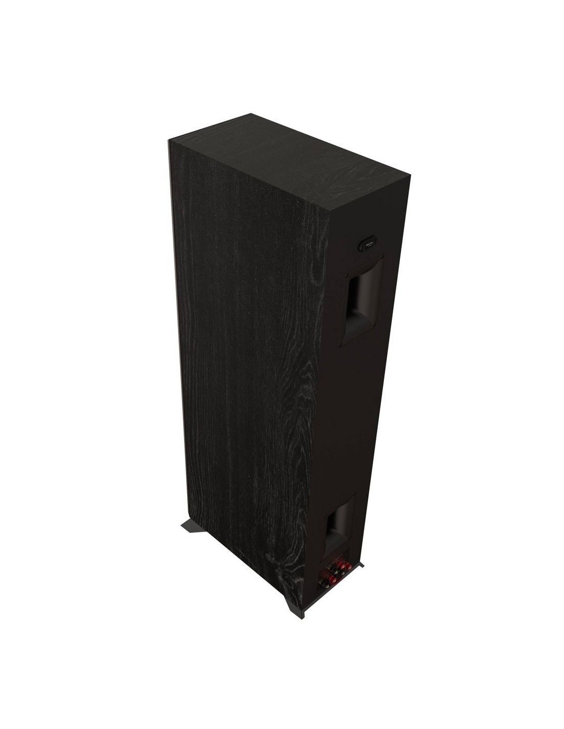 Anche l’analisi del cabinet riserva diverse sorprese. La struttura in MDF si rivela solida e resistente, con pregiate finiture. Sul retro si trova la Tractrix Port, che riprende la “solita” geometria Klipsch per un trasferimento d’aria più efficiente. In questa stessa area sono posizionati i connettori, predisposti pure per configurazioni bi-wiring.