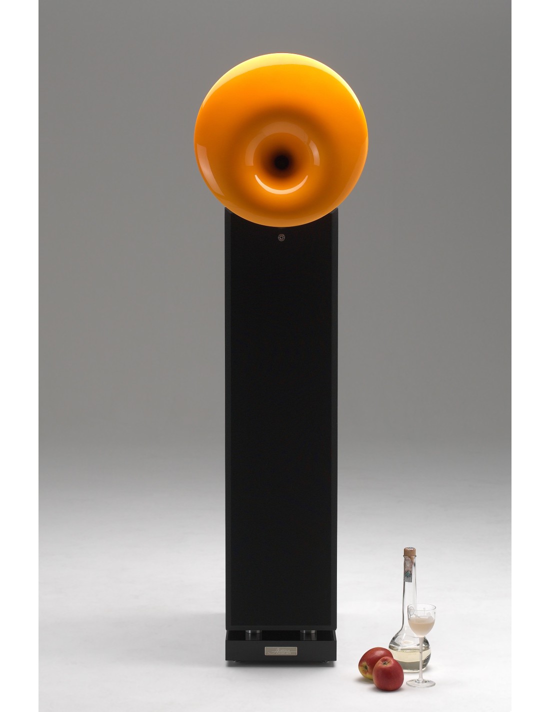 Diffusore da pavimento a due vie, caricamento reflex, risposta in frequenza 25 Hz - 25 kHz, quattro woofer da 16 cm, tweeter a tromba ipersferica da 450 mm, efficienza 93 dB / 1 W / 1 m, impedenza 8 Ohm, capacità di carico 100 W - 1 kW su impulso di 10 ms. Dimensioni (LxAxP): 265 x 1.300 x 530 mm, con sezione tromba 450 x 1.450 x 610 mm. Peso: 82 kg cadauno. Finitura della tromba a scelta, anche colori automotive.