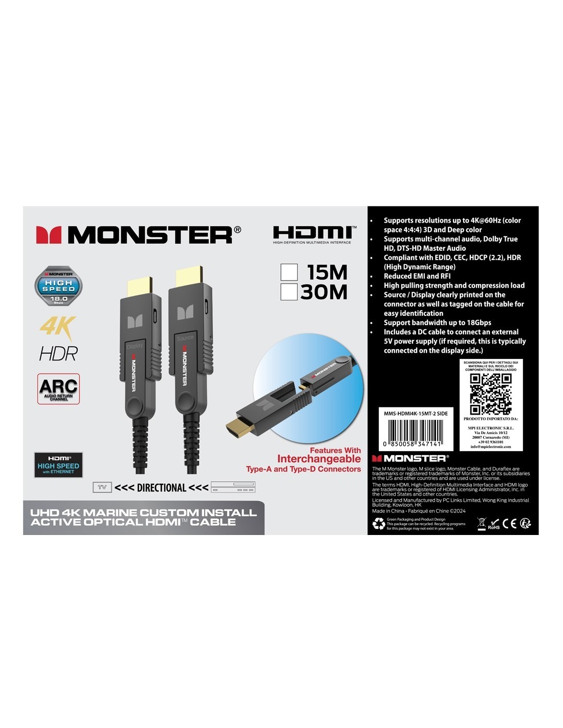 - speciali connettori HDMI D-D AOC con adattatori integrati Micro HDMI Type D femmina / HDMI Type A maschio per agevolare il processo di installazione;
