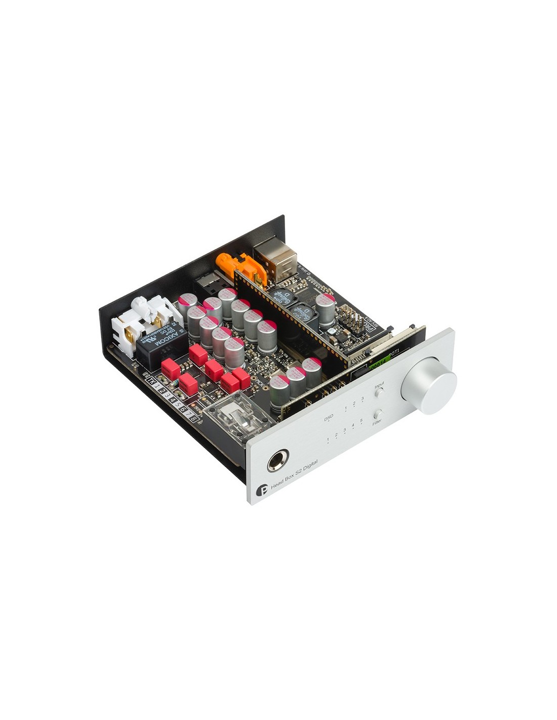 Amplificatore per cuffia digitale. Convertitore D/A Sabre ESS9038 32BIT/768khZ. Decoder DSD fino a 512. Circuitazione con componenti a basso rumore. Filtro digitale transiente e circuito di clock proprietari. 5 filtri digitali selezionabili. 3 ingressi digitali, coassiale, ottico e USB-B, 1 uscita RCA. Amplificatore per cuffia con ESS9063 e uscita 6,3mm. Dimensioni (LxAxP): 103x37x122mm.