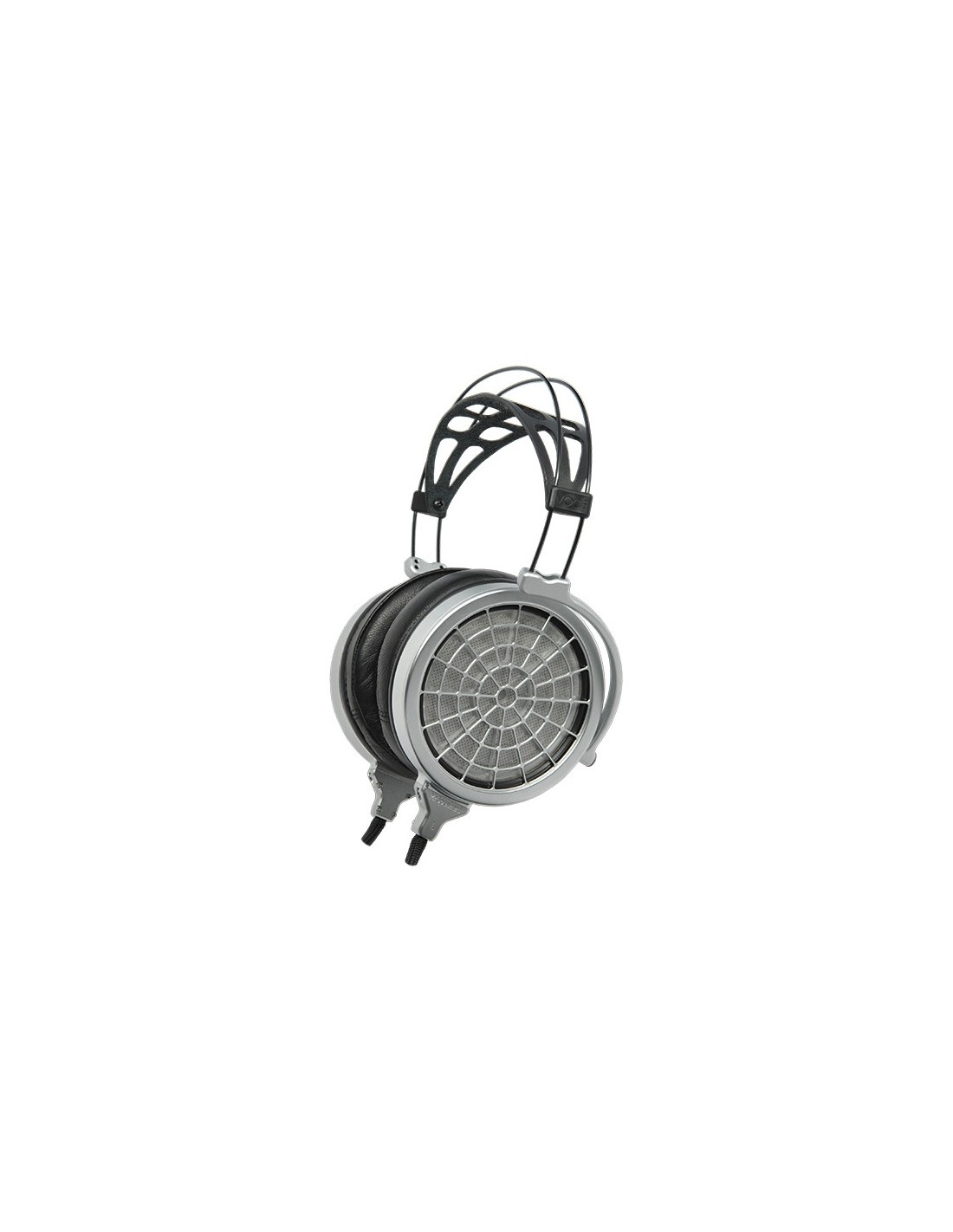 Cuffia elettrostatica di tipo aperto hi-end. Driver elettrostatici da 88mm per un'estensione in bassa frequenza fino a 10Hz completamente sigillati alla polvere. Statore metallico avanzato per una risoluzione migliorata. Padiglioni in metallo con cuscinetti in pelle d'agnello. Possibilità di ottimizzare la risposta in frequenza tramite filtrini in dotazione. In dotazione cavo Vivo a sezione rotonda, flessibile, in rame argentato, libero da disturbi microfonici, con connettore in Teflon e alluminio di lunghezza 2mt. Peso: 370gr. Capacità con cavo da 2mt: 135pF. In dotazione elegante contenitore in noce con stand cuffia integrato. Come tutte le cuffie elettrostatiche necessita di un amplificatore di pilotaggio appropriato con tensione di 580V.