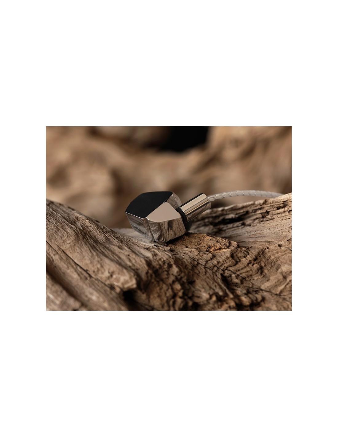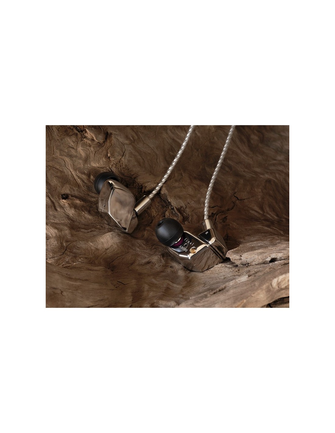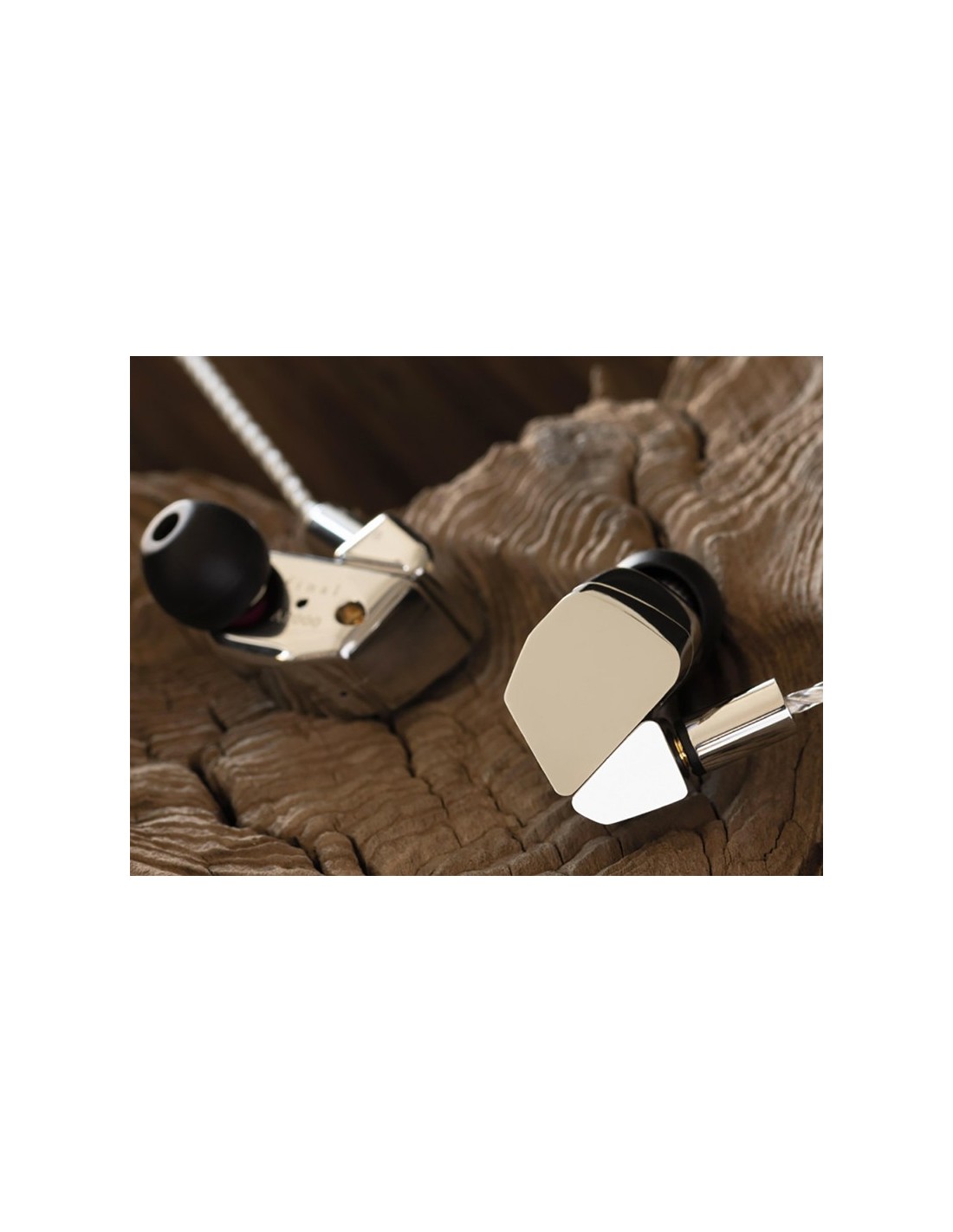 Cuffia In-Ear hi-end. Altoparlante dinamico in berillio puro. Housing in acciaio inossidabile Tetra Chamber, diviso in quattro diverse camere di risonanza per ottimizzare la pressione dell'aria a vantaggio del suono. Design audiophile. 5 tipi di auricolari in silicone in dotazione. Cavo in rame OFC argentato da 1,2m staccabile con connettori MMCX. Ganci in silicone per una ritenzione migliore. Custodia in alluminio/silicone per il trasporto. Costruzione modulare per facilitare le possibili riparazioni. Impedenza 16 ohm. 102dB. Peso: 41gr. Particolare finitura in acciaio inossidabile lucidato a specchio.