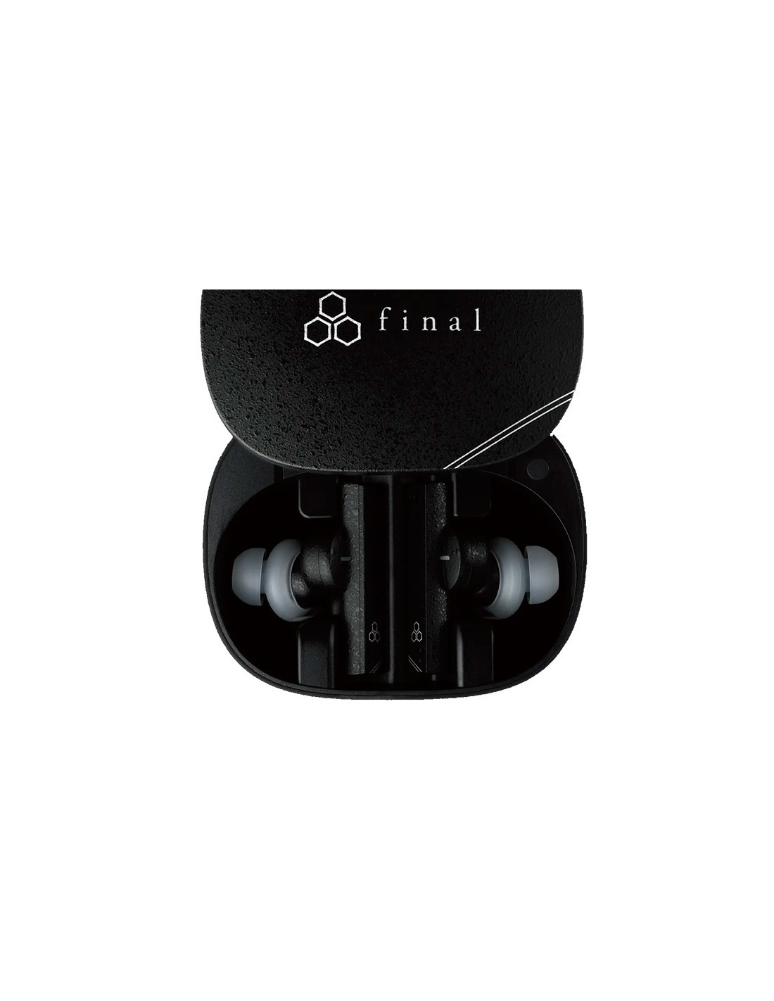 Cuffia stereo In-Ear wireless e noise cancelling con docking station. Driver da 6mm con tecnologia F-Core e sistema di smorzamento F-Link. Suono 8K sound. Ottimizzazione a step del volume. Bluetooth 5.2. Codifica AptX Adaptive. Durata della batteria delle cuffie 5 ore con volume al 50% e 15 ore della docking. Finitura premium "Shibo" per la miglior resistenza alle impronte. Resistenza all'acqua IPX4. In dotazione: cavo USB di ricarica e 5 tipi di auricolari in silicone in dotazione. Final Connect App.