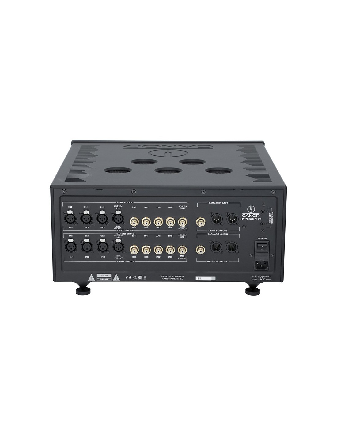 Preamplificatore a valvole in classe A. Circuitazione Zero feedback. Potenziometro del volume incapsulato in box di alluminio di spessore 10mm per la massima schermatura e separato galvanicamente da driver ottici. Tutta la circuitazione è montata su speciali colonne antivibrazioni. La sezione analogica è completamente separata dallo stadio di alimentazione da un divisorio in alluminio da 10mm per eliminare le interferenze. Valvole impiegate: 4x 6922, 2x 6H30PI. 4 ingressi XLR e 5 RCA (1 anche PRE-OUT). 2 Uscite XLR e 2 RCA. Trigger In/Out. Chassis in solido alluminio per eliminare le vibrazioni. Telecomando. Display grafico a matrice di punti. Dimensioni (LxAxP): 450x190x465mm. Peso: 35Kg
