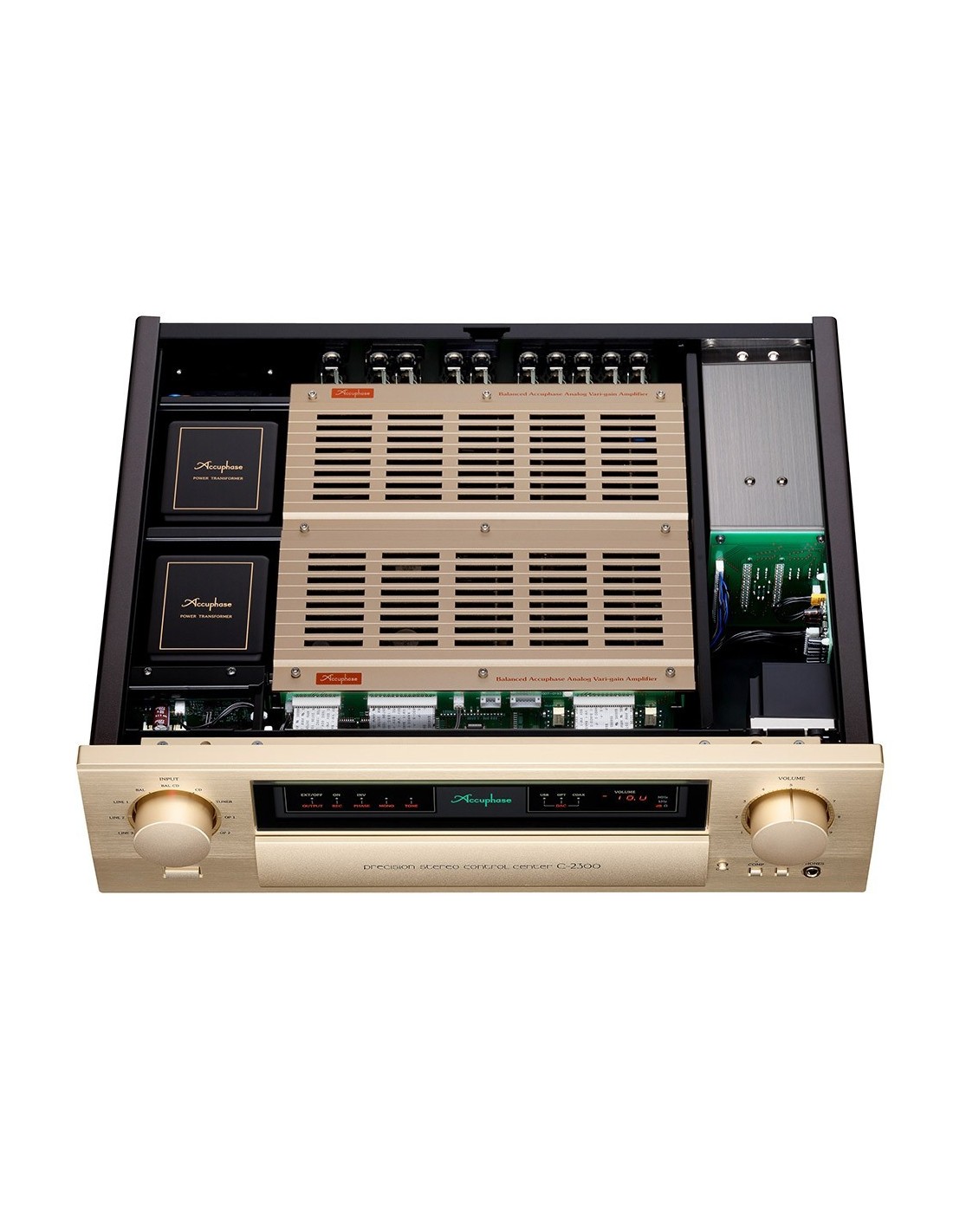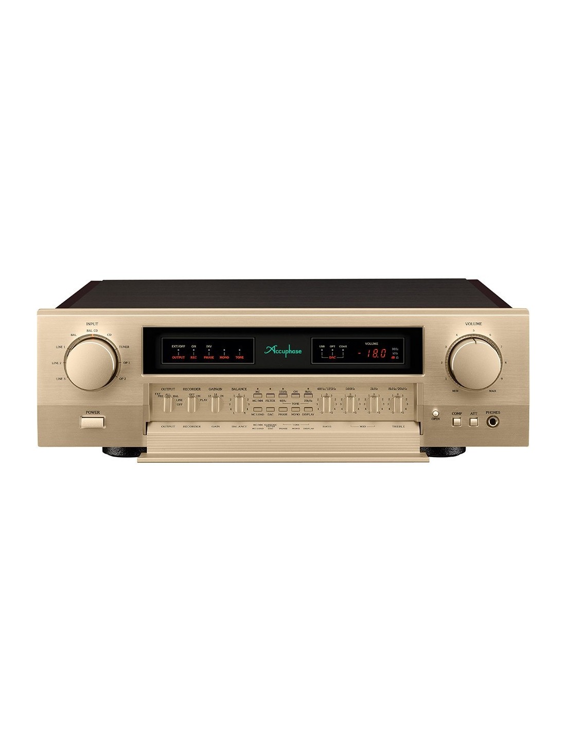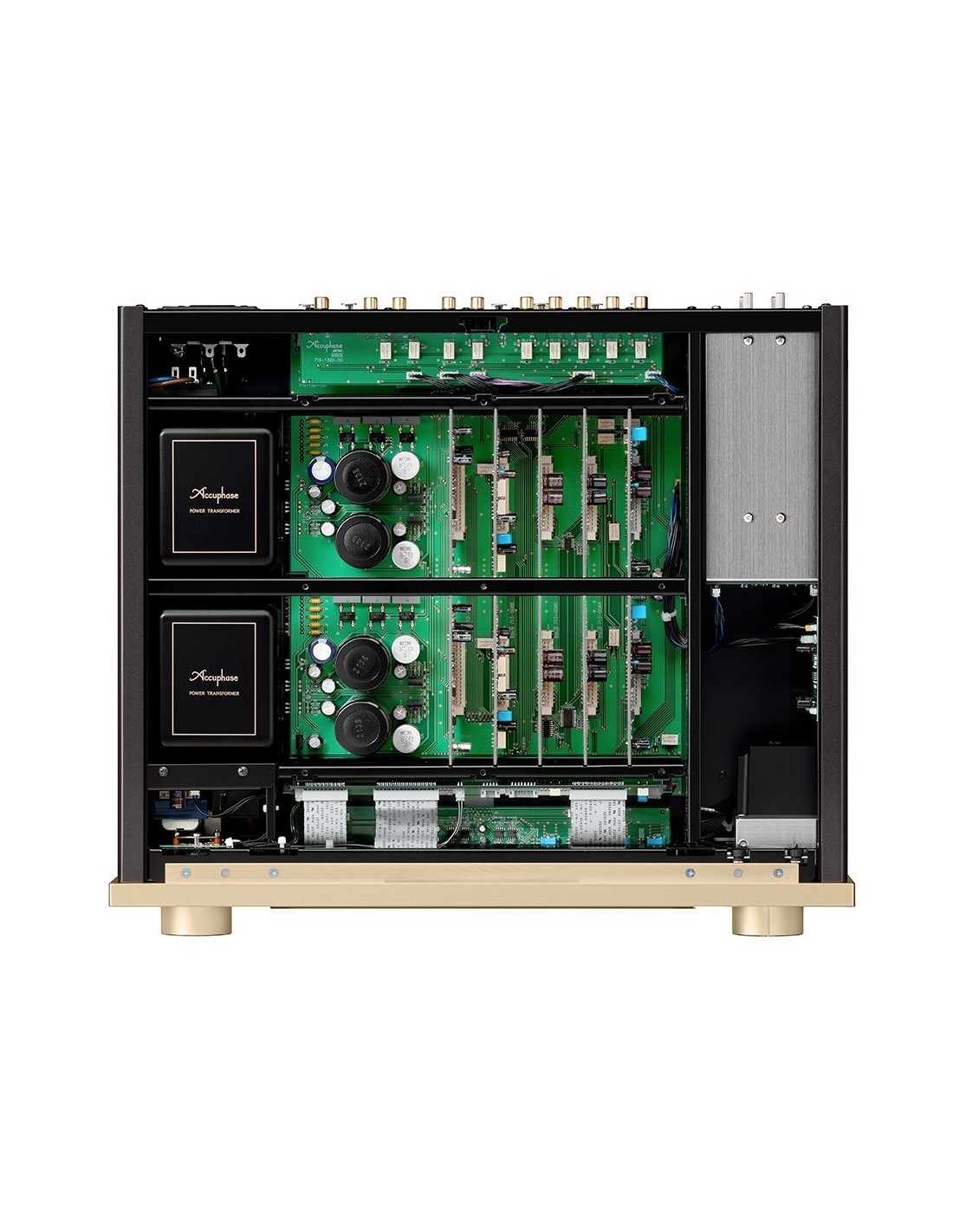Preamplificatore stereofonico bilanciato a stato solido High End - circuitazione Dual Mono e architettura simmetrica interamente modulare con unità L/R separate per ciascuno stadio di amplificazione - stadio di alimentazione con trasformatori toroidali incapsulati in case di alluminio pressofuso separati e individuali per canale destro e sinistro, coadiuvati da un totale di 4 condensatori di filtro proprietari da 10,000uF - controllo del volume Balanced AAVA (Accuphase Analog Vari-gain Amplifier), costituita da due circuiti AAVA bilanciati per ciascun canale pilotati in parallelo - potenziometro del volume proprietario motorizzato e sincronizzato con il circuito AAVA, alloggiato in un blocco d'alluminio estruso e assemblato con robustissime componenti meccaniche ad altissima precisione, progettato e costruito per garantire fluidità, stabilità e accuratezza impeccabili - selezione sorgenti mediante Logic-controlled relays - circuito di equalizzazione dei toni analogico bilanciato a 4 bande - amplificatore per cuffie dedicato a componenti discreti con transistor di potenza posizionati nello stadio di uscita in configurazione Push-Pull parallela - livello di guadagno globale variabile (12 dB / 18 dB / 24 dB) - bilanciamento dei canali implementato nel circuito AAVA - selettore di fase individuale per ciascun ingresso - modalità di riproduzione monofonica - funzioni Loudness Compensator e di attenuazione istantanea del segnale (-20 dB) - ingressi: 2x L/R bilanciati XLR, 5x L/R sbilanciati RCA, connettori EXT PRE L/R bilanciati XLR e sbilanciati RCA per collegamento a preamplificatori o sintoamplificatori A/V (HT Pass Through) esterni - uscite: 1x L/R bilanciata XLR, 2x sbilanciate RCA - ingresso/uscita L/R Recorder con comandi REC / PLAY sul pannello frontale - massiccio telaio in metallo rinforzato a compartimenti separati, ultra rigido e inerte - 2x slot per schede Accuphase opzionali (Phono MC/MM, DAC, linea) con impostazioni gestibili mediante appositi comandi già integrati sul frontale - piedi isolanti "High Carbon" con elevate proprietà di smorzamento - telecomando e cavo di segnale AL-10 in dotazione - dimensioni (L x A x P): 465 mm x 150 mm x 405 mm - peso: 19,3 Kg