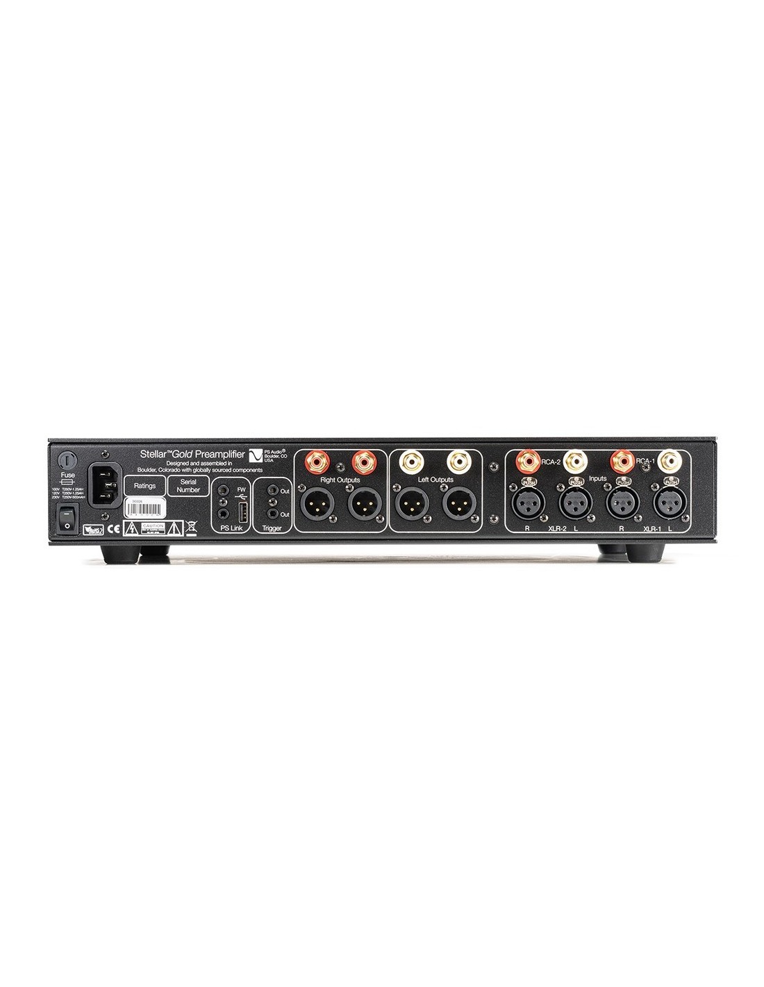 Preamplificatore analogico a stato solido completamente bilanciato - progettato, costruito e testato negli Stati Uniti presso gli stabilimenti PS Audio di Boulder, Colorado - due stadi di preamplificazione a componenti discreti assemblati a mano con transistor JFET e bipolari BJT combinati, senza condensatori lungo il percorso di segnale, caratterizzati da elevato Slew Rate, banda estremamente estesa e bassissimo rumore - controllo del volume di precisione bilanciato Stepped Attenuator a controllo elettronico - stadio d'uscita ad alta corrente in Classe A - stadio di alimentazione lineare con trasformatore ad alta corrente sovradimensionato e regolatori di tensione multipli - selezione degli ingressi mediante switch DPDT a relé dorati - condensatori Audiophile e componenti selezionati di altissima qualità - ingressi stereofonici L/R: 2x bilanciati XLR, 2x sbilanciati RCA - uscite stereofoniche L/R: 2x bilanciate XLR, 2x sbilanciate RCA - due porte Trigger jack 3,5 mm - risposta in frequenza 15 Hz - 150 kHz (+/- 0,1 dB) - distorsione armonica totale inferiore a 0,0002% (1 kHz, 1 VRMS / THD+N < 0,0003%, 1 kHz, 1 VRMS) - telecomando in dotazione - finitura Black (nera) - dimensioni (L x A x P) 432 x 84 x 330 mm - peso 10,9 Kg