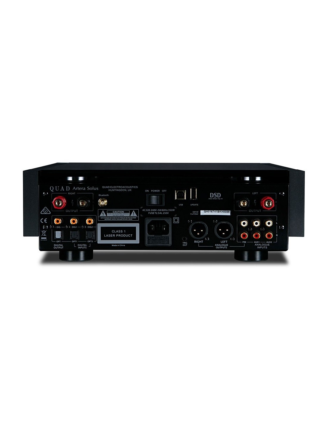 SISTEMA HI-FI MULTIFUNZIONE IN CHASSIS SINGOLO: PREAMPLIFICATORE ANALOGICO E DIGITALE, AMPLIFICATORE INTEGRATO IN CLASSE AB, LETTORE CD E CONVERTITORE DAC DSD/PCM, RICEVITORE BLUETOOTH APTX / AAC - POTENZA 75 WATT RMS PER CANALE SU 8 OHM - STADIO DI ALIMENTAZIONE CON TRASFORMATORE TOROIDALE - MECCANICA CD SLOT-IN CON BUFFER DI LETTURA E TRASMISSIONE DATI ASINCRONA - CONVERTITORE DIGITALE/ANALOGICO ESS SABRE 9018 K2M CON RIPRODUZIONE DI FLUSSI DIGITALI DSD256 E PCM FINO A 32 BIT / 384 KHZ - 2X INGRESSI ANALOGICI L/R SBILANCIATI RCA - USCITE ANALOGICHE: 1X L/R BILANCIATA XLR, 1X L/R SBILANCIATA RCA - INGRESSI DIGITALI: 1X USB ASINCRONO (DSD/PCM), 2X COASSIALI ELETTRICI S/PDIF RCA (PCM 24/192), 2X OTTICI TOSLINK (PCM 24/192) - USCITE DIGITALI: 1X COASSIALE ELETTRICA S/PDIF RCA, 1X OTTICA TOSLINK - PRESA PER CUFFIE CON JACK 6,3 MM - PORTA TRIGGER OUT 3,5 MM 12 V - CABINET RINFORZATO CON FRONTALE IN ALLUMINIO SPAZZOLATO, PANNELLI LATERALI DISSIPANTI IN METALLO RICAVATI DAL PIENO, TOP IN VETRO DI SPESSORE ELEVATO - TELECOMANDO IN DOTAZIONE - FINITURA SILVER (ARGENTO) - DIMENSIONI (L X A X P) 320 X 105 X 320 MM - PESO 11,9 KG