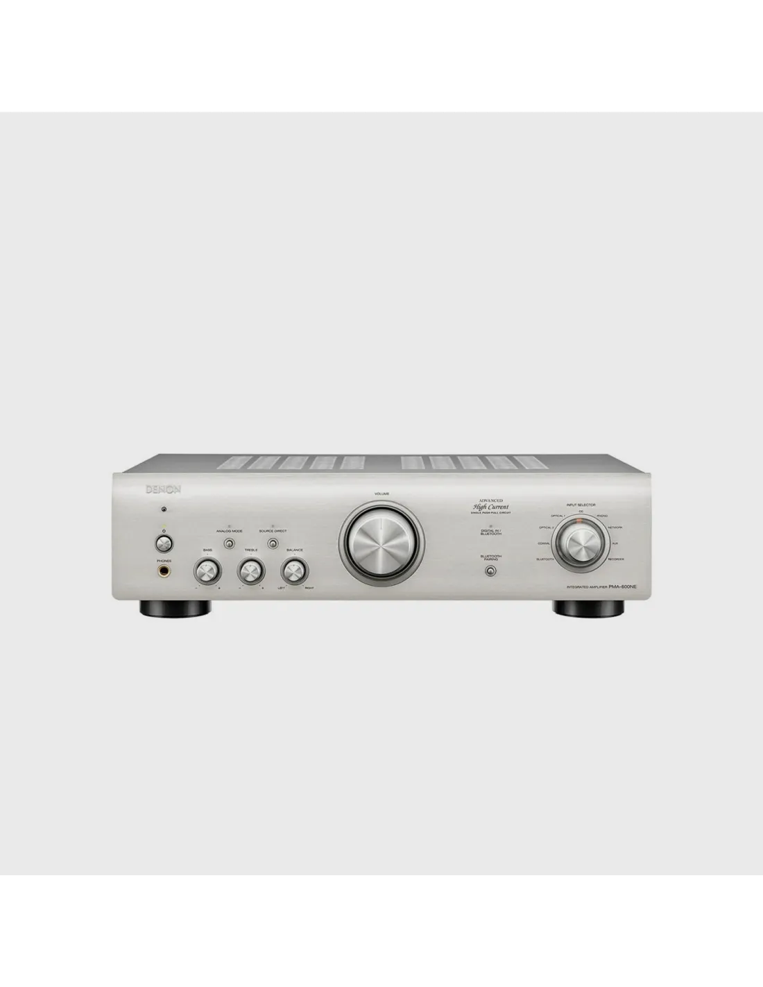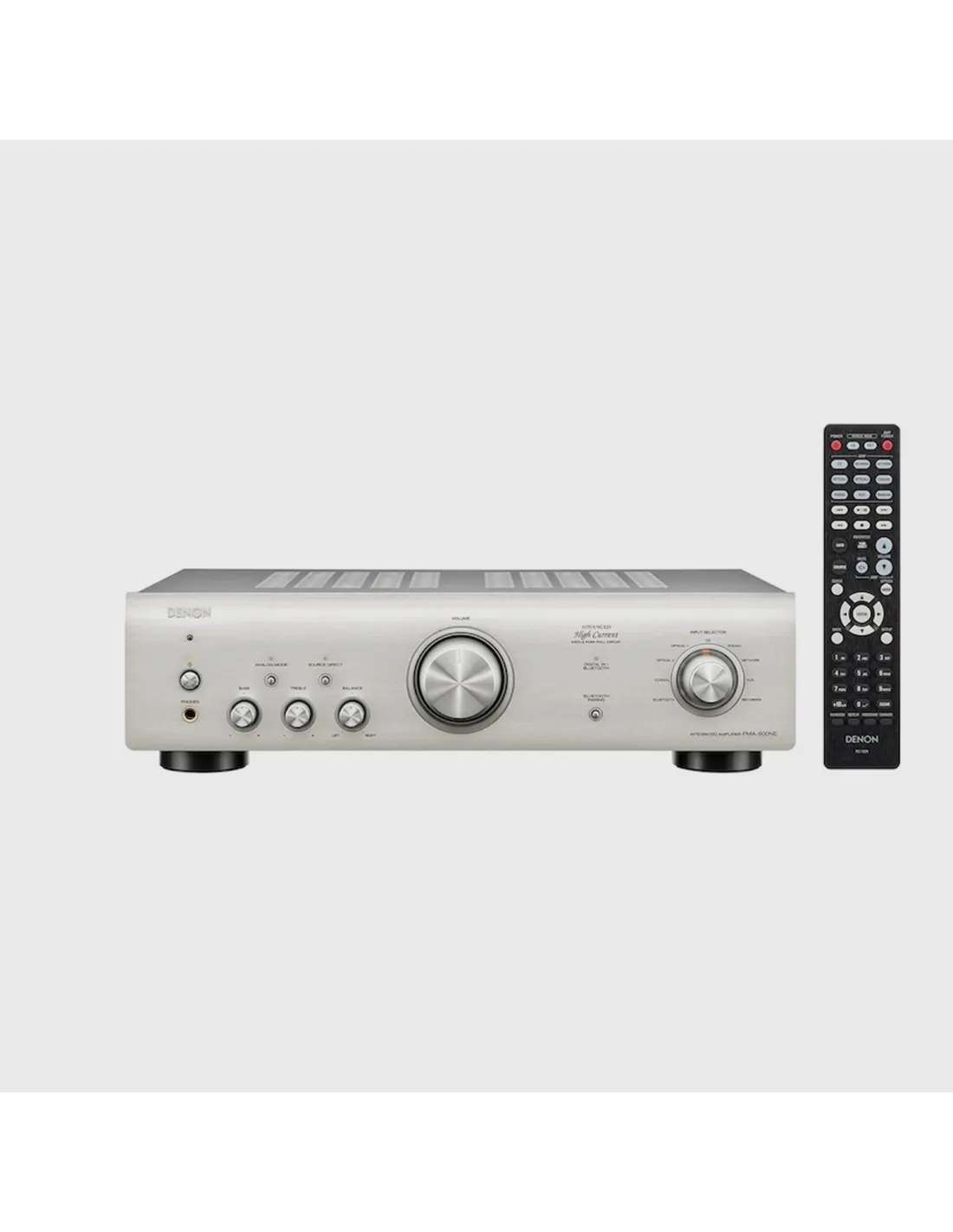 Amplificatore Integrato, 2 X 70 W (4 ohm) con bluetooth e ingresso phono MM. 2 ingressi ottici e 1 ingresso digitale coassiale, Amplificazione di potenza Denon Advanced High Current (AHC) con circuito single-push-pull per offrire una qualità del suono eccezionale con una elevata potenza e dettagli musicali, Telecomando, Direct Mechanical Ground Construction per minimizzare le vibrazioni, Terminali High quality per diffusori, Pre-out (mono per sub)