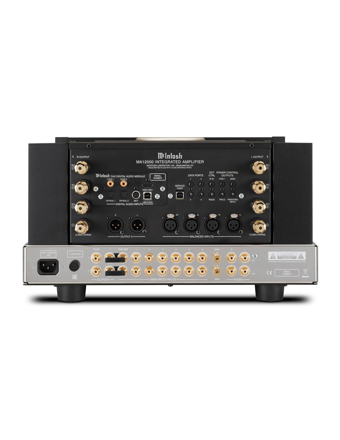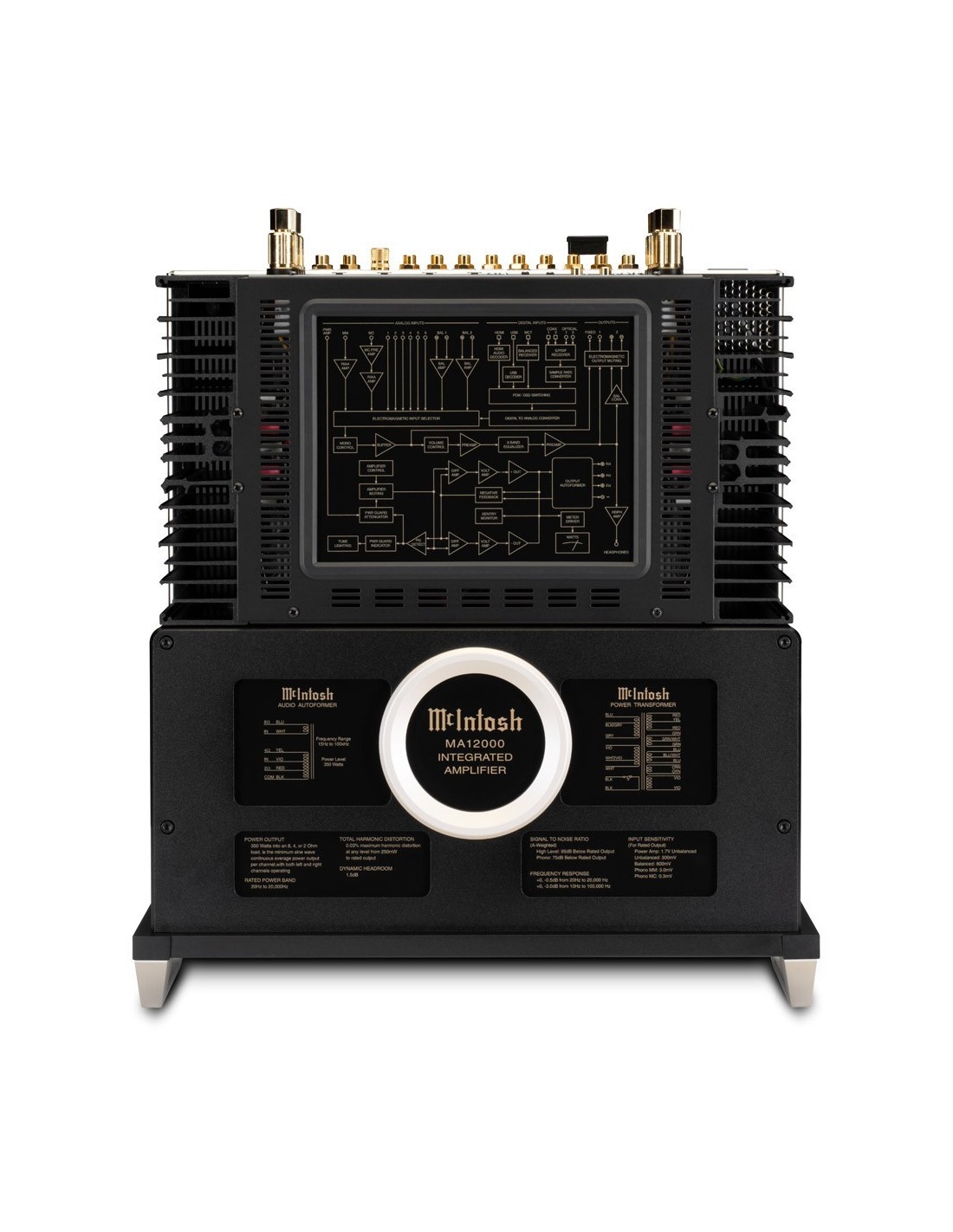 AMPLIFICATORE INTEGRATO IBRIDO CON STADIO DI PREAMPLIFICAZIONE A VALVOLE (4X 12AX7A), FINALE DI POTENZA A STATO SOLIDO CON USCITA A TRASFORMATORI AUTOFORMER E POTENZA DI 350 WATT PER CANALE SU 2, 4 E 8 OHM - EFFICIENTISSIMO SISTEMA DI DISSIPAZIONE MONOGRAMMED HEATSINKS CON LOGO MC SAGOMATO SULLE ALETTE E TRANSISTOR AD ALTA CORRENTE IN GRADO DI GARANTIRE LE MASSIME PRESTAZIONI SONORE SIN DALL'AVVIO - STADIO PHONO MC/MM INCORPORATO CON IMPOSTAZIONI DI CARICO INDIVIDUALI REGOLABILI - SEZIONE DIGITALE CON MODULO ESTRAIBILE E AGGIORNABILE DA2 CERTIFICATO ROON TESTED, DOTATO DI CONVERTITORE DAC DSD NATIVO (DSD64, DSD128, DSD256, DSD512), DXD FINO A 384 KHZ, PCM FINO A 32 BIT/384 KHZ ED EQUIPAGGIATO DELLE SEGUENTI INTERFACCE D'INGRESSO: 1X HDMI (ARC/CEC) CON DECODIFICA DTS E DOLBY DIGITAL, DOWN MIX HARDWARE A 2 CANALI E FUNZIONE LIP SYNC AUTOMATICA O MANUALE / 1X CONNESSIONE PROPRIETARIA MCINTOSH MCT DIN PER LA RICEZIONE DI FLUSSI DIGITALI CD/SACD DSD NATIVI MEDIANTE COLLEGAMENTO A MECCANICHE COMPATIBILI / 1X USB ASINCRONO / 2X COASSIALI ELETTRICI S/PDIF RCA / 2X OTTICI TOSLINK - INGRESSI ANALOGICI STEREOFONICI (RINOMINABILI E DISPONIBILI SIMULTANEAMENTE): 2X BILANCIATI XLR, 6X SBILANCIATI RCA, 1X PHONO MC SBILANCIATO RCA, 1X PHONO MM SBILANCIATO RCA - SEPARAZIONE PRE/FINALE - USCITE ANALOGICHE STEREOFONICHE: 1X BILANCIATA XLR (VARIABILE), 2X SBILANCIATE RCA (1X FISSA, 1X VARIABILE) - SISTEMI PROPRIETARI POWER GUARD E SENTRY MONITOR PER LA SALVAGUARDIA DEI DIFFUSORI, PER LA PREVENZIONE DEL CLIPPING E PER LA PROTEZIONE DA SOVRACCARICHI E CORTOCIRCUITI - FUNZIONE HOME THEATER PASSTHRU - AMPLIFICATORE PER CUFFIE AD ALTA USCITA CON TECNOLOGIA HEADPHONE CROSSFEED DIRECTOR (HXD ) - EQUALIZZATORE ANALOGICO A 8 BANDE ESCLUDIBILE - OUTPUT VU-METER - PORTE RS232, DATA/POWER CONTROL E IR - TELECOMANDO IN DOTAZIONE - DIMENSIONI (L X A X P) 445 X 240 X 559 MM - PESO 48,9 KG