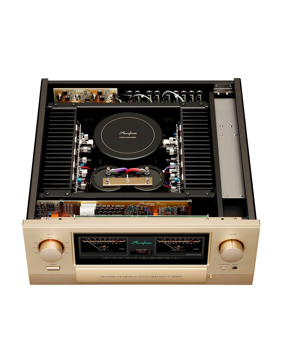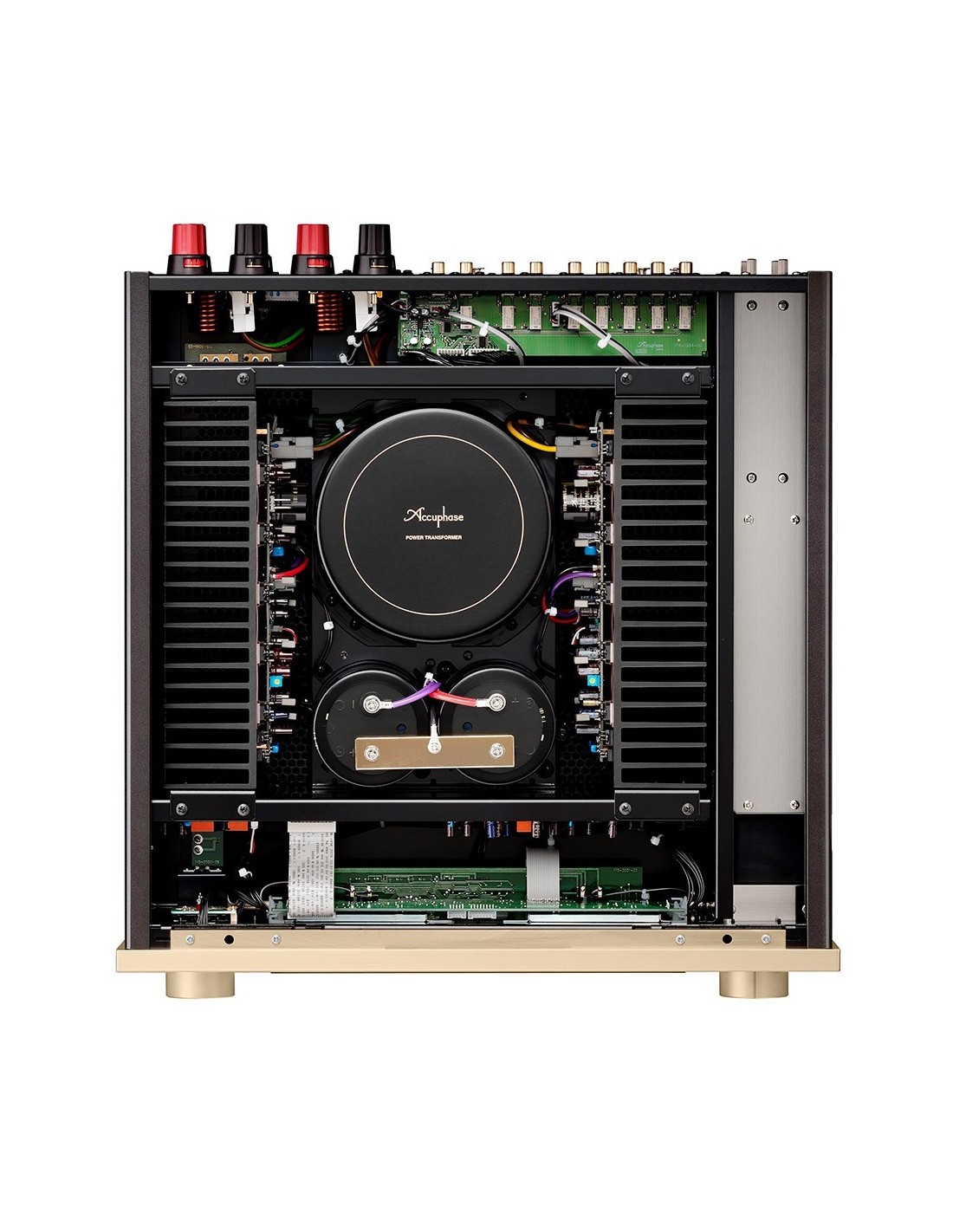 AMPLIFICATORE INTEGRATO STEREOFONICO BILANCIATO A STATO SOLIDO, TOP DI GAMMA ACCUPHASE IN CLASSE AB - POTENZA PER CANALE 240 WATT SU 8 OHM, 320 WATT SU 4 OHM - RISPOSTA IN FREQUENZA FINO A 3 HZ - 150 KHZ - DISTORSIONE ARMONICA TOTALE (THD) 0,05% DA 4 A 16 OHM - RAPPORTO SEGNALE/RUMORE (S/N RATIO) FINO A 126 DB - CONTROLLO VOLUME BALANCED AAVA (ACCUPHASE ANALOG VARI-GAIN AMPLIFIER) CON DOPPIO CIRCUITO AAVA PER CIASCUN CANALE IN CONFIGURAZIONE BILANCIATA - POTENZIOMETRO DEL VOLUME PROPRIETARIO MOTORIZZATO E SINCRONIZZATO CON IL CIRCUITO AAVA, ALLOGGIATO IN UN BLOCCO D'ALLUMINIO ESTRUSO E ASSEMBLATO CON ROBUSTISSIME COMPONENTI MECCANICHE AD ALTISSIMA PRECISIONE, PROGETTATO E COSTRUITO PER GARANTIRE FLUIDITA', STABILITA' E ACCURATEZZA IMPECCABILI - SEZIONE PRE E FINALE SEPARATE, SFRUTTABILI ANCHE INDIVIDUALMENTE MEDIANTE TASTO SUL PANNELLO FRONTALE, CON INGRESSI POWER IN BILANCIATI XLR / SBILANCIATI RCA E USCITE PRE OUT BILANCIATE XLR / SBILANCIATE RCA - STADIO DI AMPLIFICAZIONE IN CONFIGURAZIONE MONO BLOCK SIMMETRICA CON CIRCUITI MODULARI SEPARATI PER IL CANALE DESTRO E SINISTRO, DOTATI DI TRANSISTOR DI POTENZA BIPOLARI IN QUINTUPLA CONFIGURAZIONE PUSH-PULL PARALLELA - STADIO D'USCITA CURRENT FEEDBACK CON TECNOLOGIA BALANCED REMOTE SENSING A BASSISSIMA IMPEDENZA, CON DAMPING FACTOR PARI A 1000 - STADIO D'ALIMENTAZIONE CON TRASFORMATORE TOROIDALE SOVRADIMENSIONATO E CONDENSATORI DI FILTRO PROPRIETARI D'ELEVATA CAPACITA' - SELEZIONE SEGNALI IN INGRESSO MEDIANTE LOGIC-CONTROLLED RELAYS - CIRCUITO DI PROTEZIONE DEI DIFFUSORI CON SEMICONDUTTORI MOS-FET A BASSISSIMA RESISTENZA - CIRCUITO DI PROTEZIONE NELLO STADIO DI POTENZA DOTATO DI FOTOACCOPPIATORE E SENSORE DI TEMPERATURA, IN GRADO DI RILEVARE IN TEMPO REALE EVENTUALI SOVRACCORRENTI E SURRISCALDAMENTI, ARRESTANDO ISTANTANEAMENTE L'EROGAZIONE DI CORRENTE - CONTROLLO DEI TONI BILANCIATO ESCLUDIBILE, SELETTORE DI FASE INDIVIDUALE PER CIASCUN INGRESSO, PRECISISSIMO CONTROLLO DI BILANCIAMENTO CANALI (IMPLEMENTATO NEL CIRCUITO AAVA), MODALITA' DI RIPRODUZIONE MONOFONICA, ATTENUATORE ISTANTANEO DEL VOLUME (-20 DB) E COMPENSATORE LOUDNESS - AMPLIFICATORE PER CUFFIE A COMPONENTI DISCRETI DEDICATO - PEAK POWER METER ANALOGICI - 2X INGRESSI BILANCIATI L/R XLR, 5X INGRESSI SBILANCIATI L/R RCA, INGRESSI E USCITE RECORDER L/R RCA - DOPPIO SET DI TERMINALI PER DIFFUSORI (A / B / A+B) - 2X SLOT PER SCHEDE ACCUPHASE OPZIONALI (PHONO MC/MM, DAC, LINEA) CON IMPOSTAZIONI GESTIBILI MEDIANTE APPOSITI COMANDI GIA' INTEGRATI SUL FRONTALE - TELECOMANDO IN DOTAZIONE - DIMENSIONI (L X A X P): 465 MM X 211 MM X 502 MM - PESO: 33,8 KG
