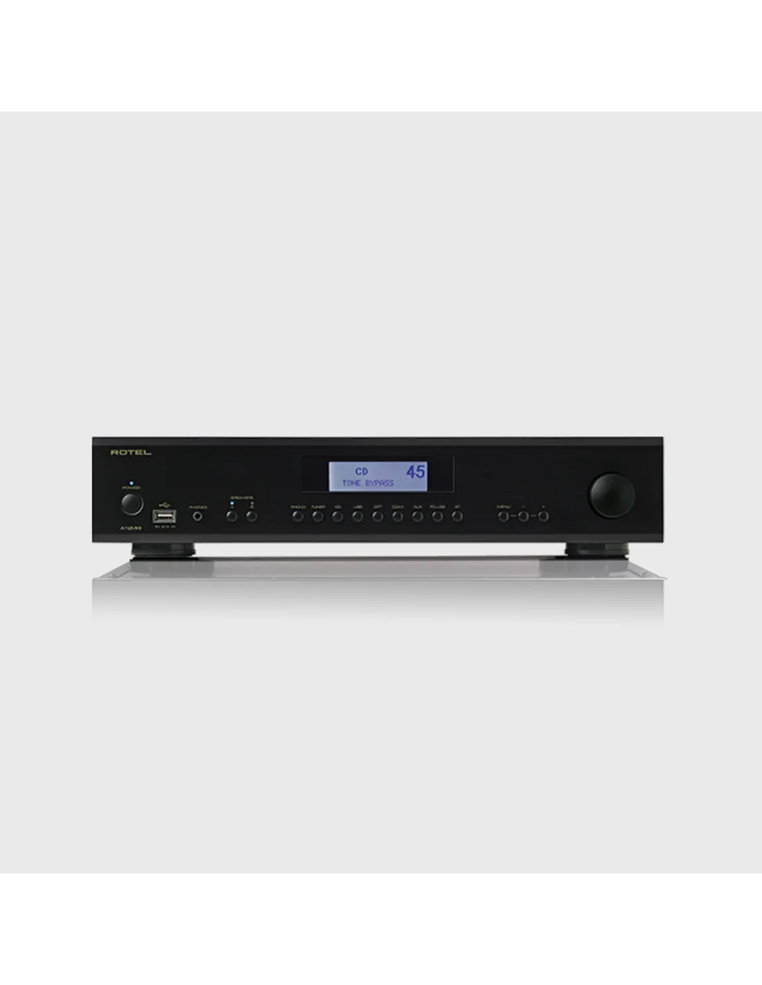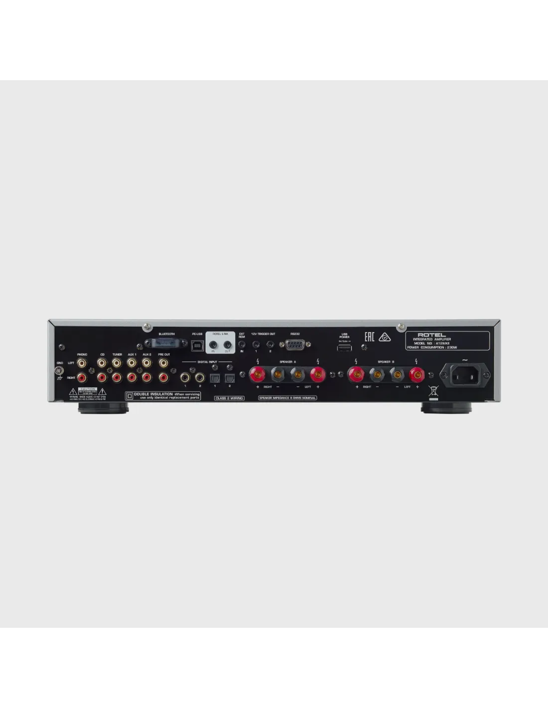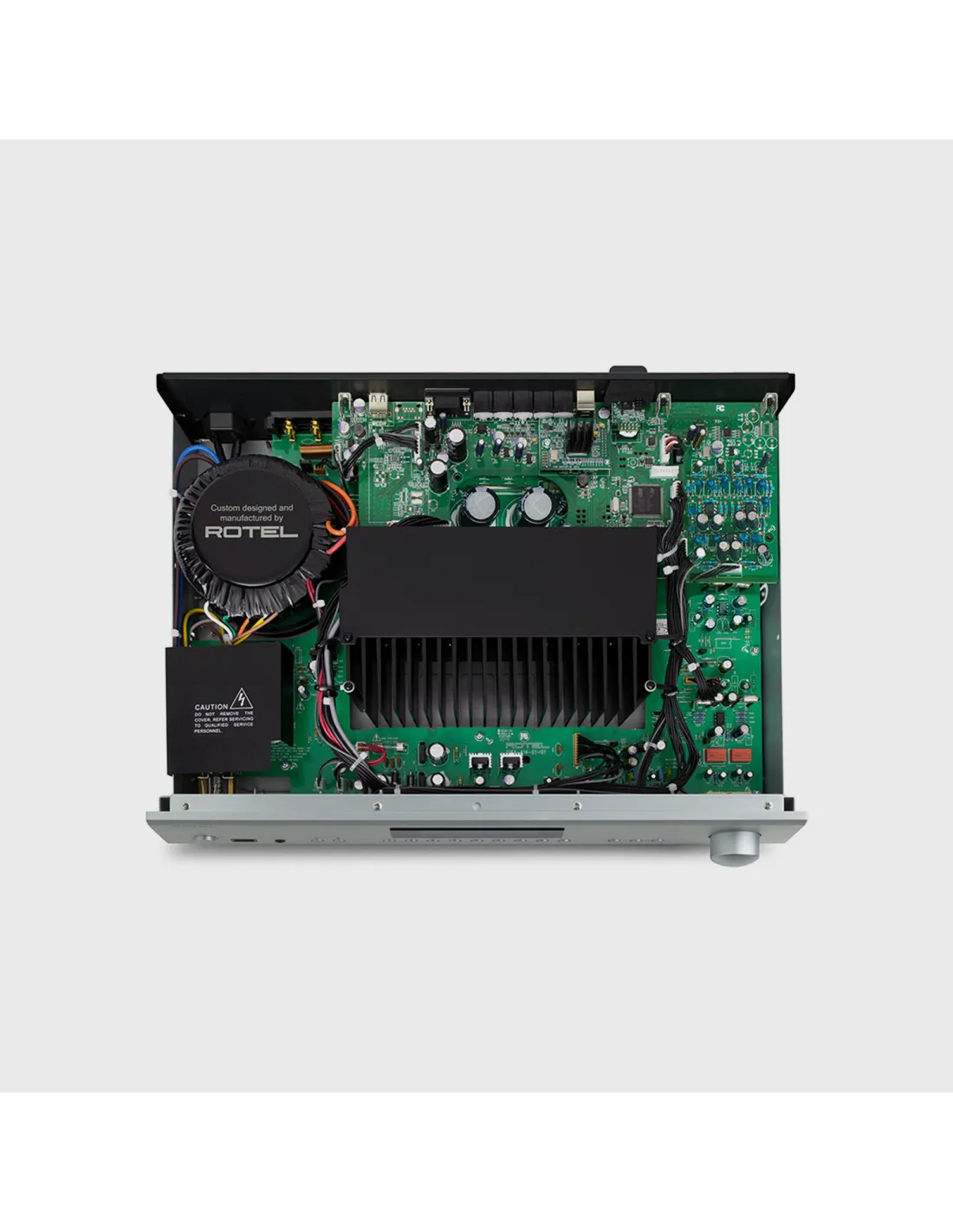 Amplificatore integrato da 60+60W RMS su 8 ohm, stadio finale ad alta corrente, sezione di alimentazione con trasformatore toroidale, protezione elettronica dei diffusori. Bluetooth aptX. Roon tested. 4 ingressi analogici, 1 ingresso phono MM, 2 ingressi USB (1 sul frontale), 1 ingresso PC-USB, 2 ingressi digitali coassiali e 2 ottici, uscita pre out. Convertitore D/A Texas Instruments 32-bit/384kHz. Presa cuffia. Display grafico LCD a 4 righe. Diffusori A, B, A+B. Doppio comando di trigger a 12V. RS-232. Telecomando in dotazione.