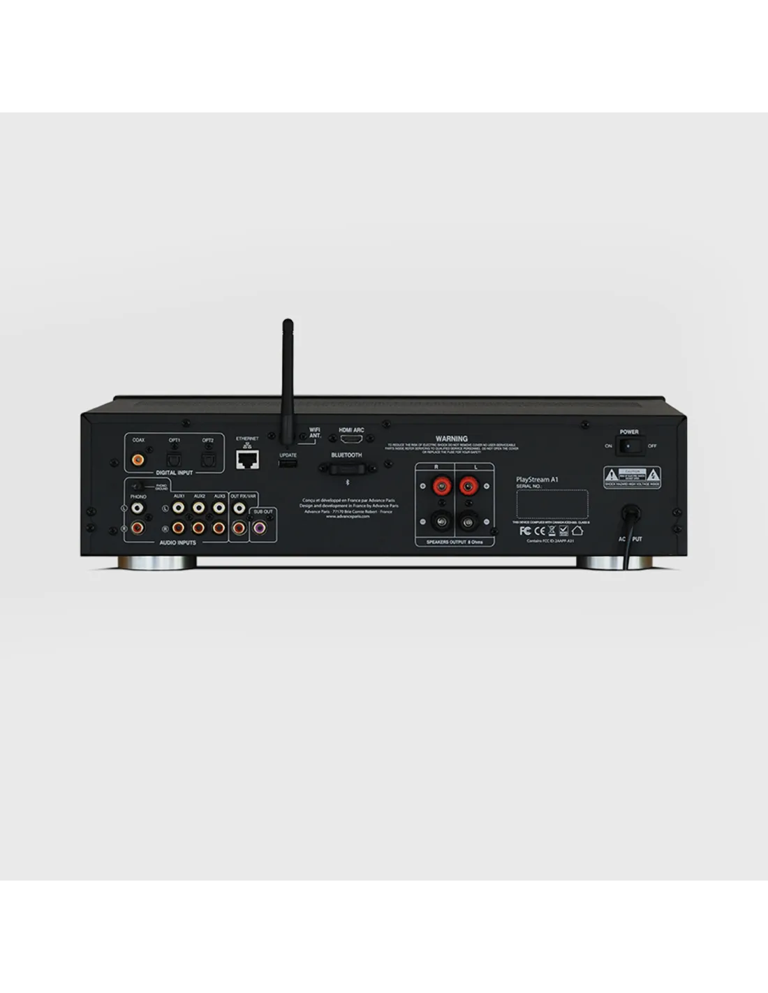 AMPLIFICATORE INTEGRATO STEREOFONICO IN CLASSE AB CON STREAMER DI RETE E DAC CON INGRESSO HDMI ARC INCORPORATI - POTENZA 52 WATT PER CANALE SU 6 OHM - LETTORE DI RETE ETHERNET / WI-FI DLNA COMPATIBILE CON POSSIBILITA' DI RIPRODURRE DIRETTAMENTE DA NAS E DA QUALUNQUE SERVER DI RETE - POSSIBILITA' DI IMPRONTARE SISTEMI MULTI-ROOM IN SINERGIA CON ALTRI PRODOTTI ADVANCE ACOUSTIC - APP DEDICATA ADVANCE PLAYSTREAM PER IOS / ANDROID CON SERVIZI DI STREAMING TRA I QUALI SPOTIFY, TIDAL, QOBUZ, DEEZER, TUNEIN, INTERNET RADIO E ALTRI - STADIO PHONO MM - INTERFACCIA DIGITALE DEDICATA AL COLLEGAMENTO DI UN MODULO A CHIAVETTA BLUETOOTH 5.0 X-FTB02 (CODEC APTX HD, APTX, AAC, SBC) OPPURE X-FT01 (CODEC APTX, AAC) - AMPLIFICATORE PER CUFFIE CON USCITA JACK 6,3 MM E PRESA USB TYPE A PER RIPRODUZIONE DA PEN DRIVE (FAT32 / 128 GB) SUL PANNELLO FRONTALE - CIRCUITO DI CONTROLLO TONI E LOUDNESS ESCLUDIBILI - CONVERTITORE DAC ASAHI KASEI AKM CON SUPPORTO PER FORMATI AD ALTA RISOLUZIONE FINO A 24 BIT / 192 KHZ - INGRESSI AUDIO DIGITALI: 1X HDMI ARC, 1X S/PDIF COASSIALE ELETTRICO RCA (24/192), 2X OTTICI TOSLINK (24/96) - INGRESSI AUDIO ANALOGICI L/R: 3X SBILANCIATI RCA, 1X PHONO MM - USCITA ANALOGICA PRE-OUT STEREOFONICA L/R A LIVELLO FISSO O VARIABILE E USCITA DEDICATA PER SUBWOOFER - TELECOMANDO IN DOTAZIONE - FINITURA NERA CON PANNELLO FRONTALE IN ALLUMINO SPAZZOLATO - DIMENSIONI (L X A X P) 430 X 135 X 370 MM - PESO 6,5 KG