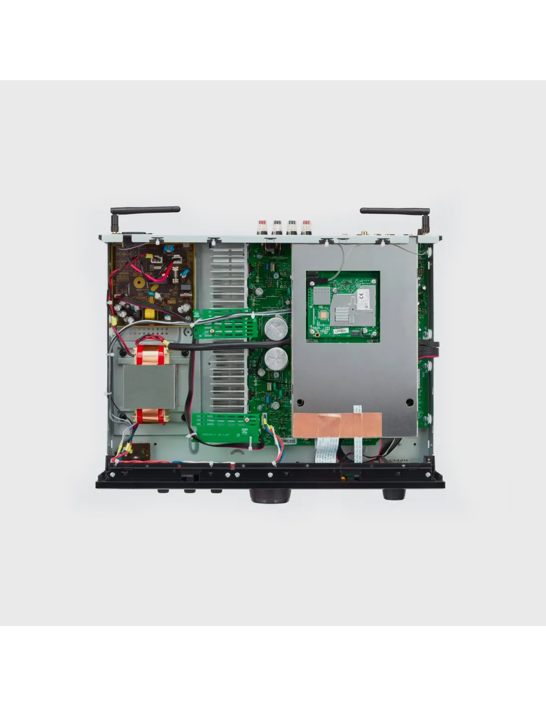I motivi di interesse, in un dispositivo del genere, sono numerosi. Concentrando l’attenzione sulla parte dedicata all’amplificazione, spicca il design Advanced High Current da 85 W per canale con alimentatore sovradimensionato. Questa soluzione assicura prestazioni eccellenti con qualsiasi tipologia di diffusore. Completa e varia si presenta anche la connettività. Gli amanti dei vinili apprezzeranno la presenza di un ingresso phono con supporto a testine MM ed MC. A questo si aggiungono ingressi digitali e coassiali, che consentono di riprodurre segnali PCM fino a 192 kHz/24 bit. Da non dimenticare poi l’uscita per il subwoofer, i terminali per diffusori A/B e la connettività bluetooth (oltre che AirPlay 2). I formati riproducibili sono diversi: ALAC, FLAC e WAV lossless fino a 24 bit/192 kHz, DSD a 2,8 MHz e 5,6 MHz.