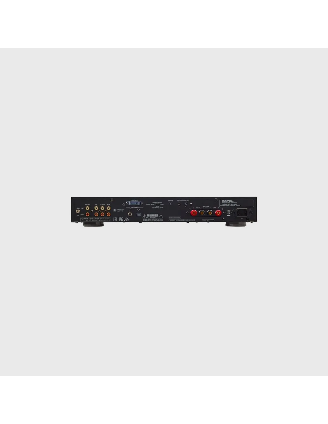Amplificatore integrato da 50+50W RMS su 8 ohm, stadio finale ad alta corrente, sezione di alimentazione con trasformatore toroidale, protezione elettronica dei diffusori, controllo dei toni bass/treble e del bilanciamento. Ingressi analogici: 3 ingressi linea, 1 ingresso phono MM. Ingressi digitali: 1 ottico, 1 coassiale, Bluetooth aptX HD. Convertitore D/A Texas Instruments 32bit/384KHz. Uscita cuffia con amplificatore dedicato. Doppio comando di trigger a 12V. Telecomando in dotazione.