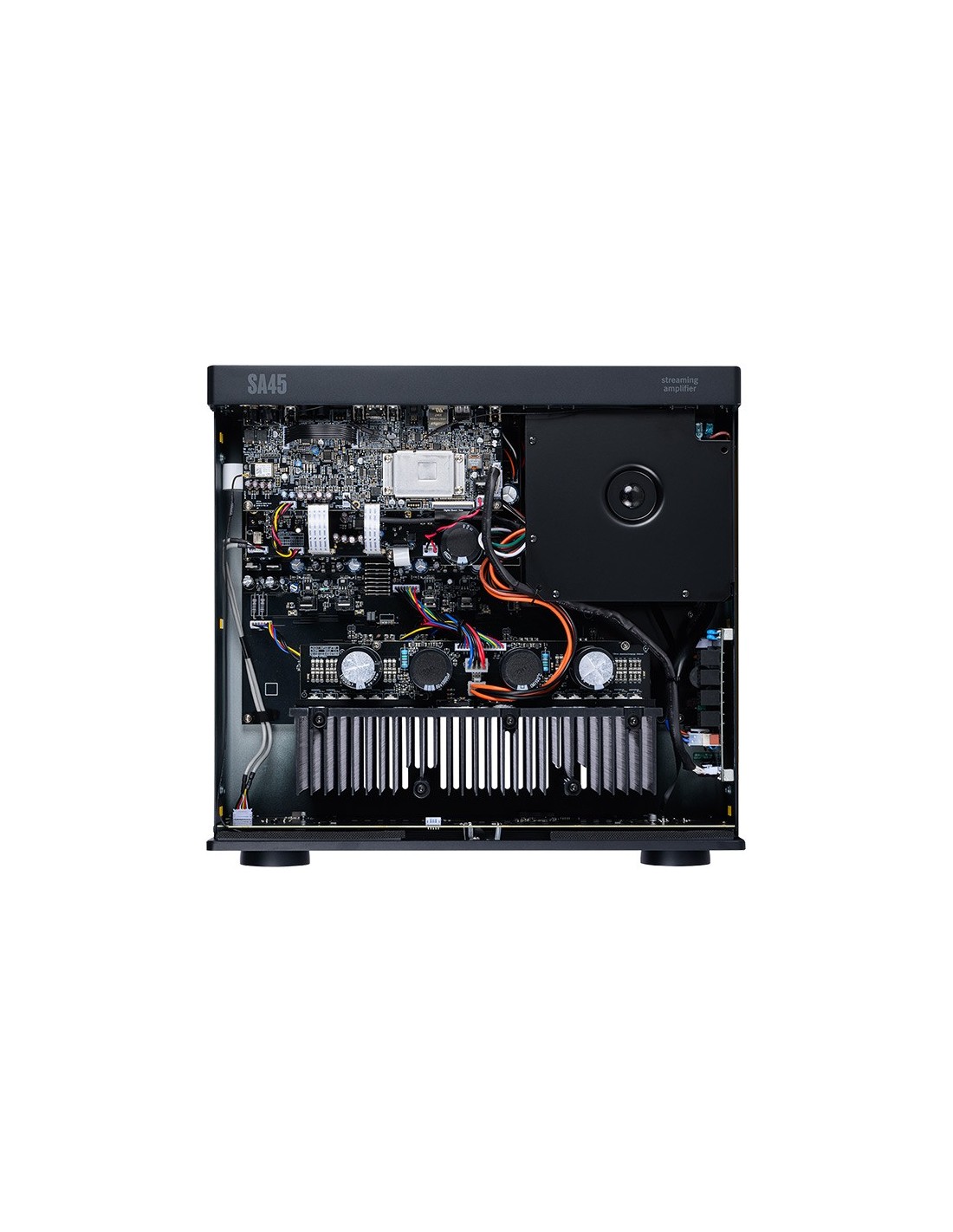 Amplificatore integrato in Classe G con streamer interno. Potenza 2x180W su 8ohm e 2x300W su 4ohm. 3 ingressi analogici RCA, 1 ingresso Phono MM/MC. 1 ingresso XLR bilanciato. Ingresso HDMI e Arc. Uscita pre-out e due uscite SUB sia RCA che XLR bilanciate. 4 ingressi digitali, 2 coassiali SPDIF e 2 ottici. 1 uscita ottica. Ingresso USB-C. DAC Hyperstream IV di ESS in configurazione bilanciata. Dirac Live. Apple AirPlay 2, Google Cast, Spotify Connect, Tidal Connect. Risoluzione 32bit/384KHz. Ricevitore Bluetooth bidirezionale 5.4. WiFi 2.4/5GHz. Arcam Radia App. Trasformatore toroidale. Presa ethernet per controllo IP. Trigger In/Out. Display OLED da 8,8". Telecomando e microfono di calibrazione. Dimensioni (LxAxP) 432x140x390mm. Peso: 17kg.