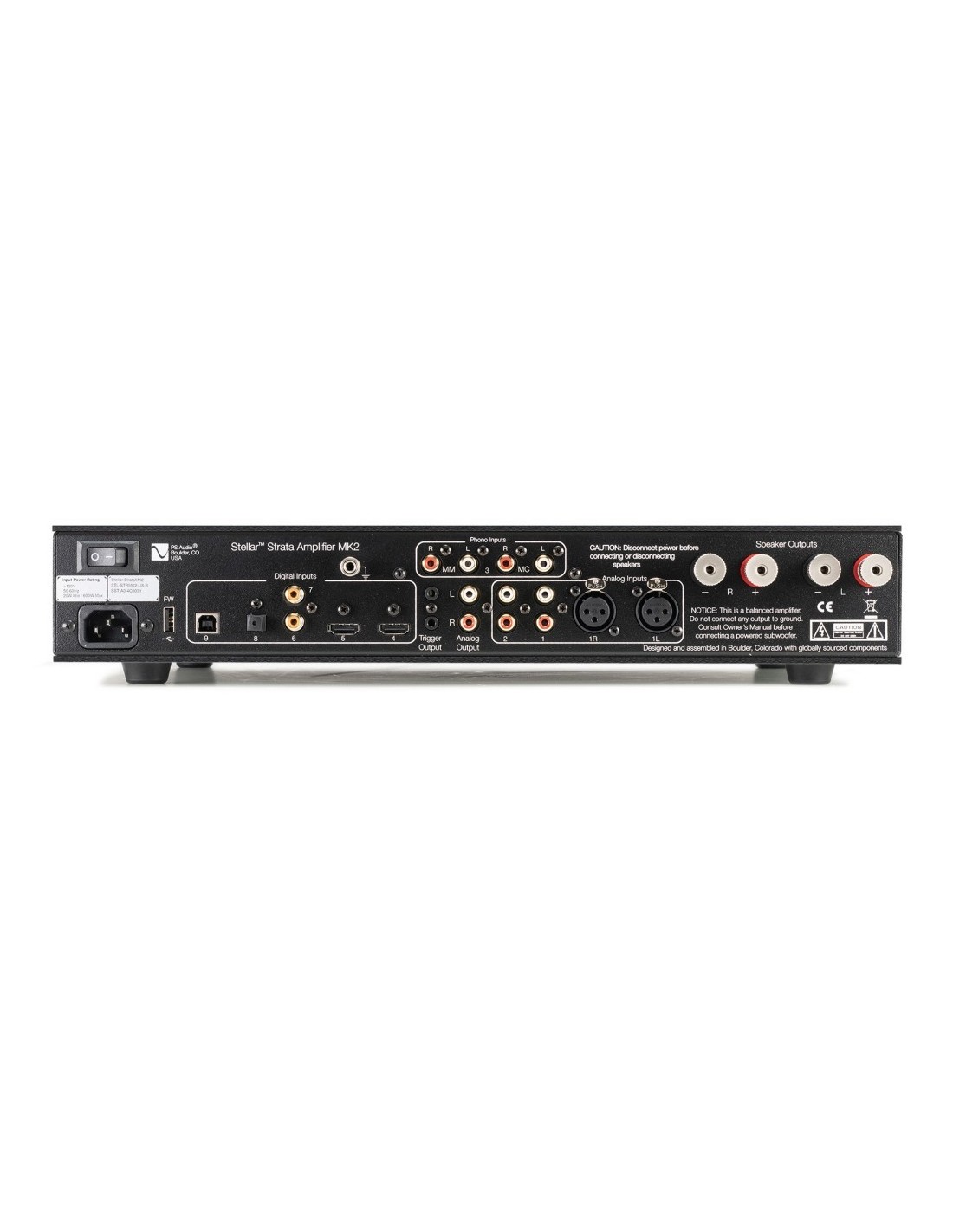 - progettato, assemblato e testato negli Stati Uniti presso gli stabilimenti PS Audio di Boulder, Colorado;