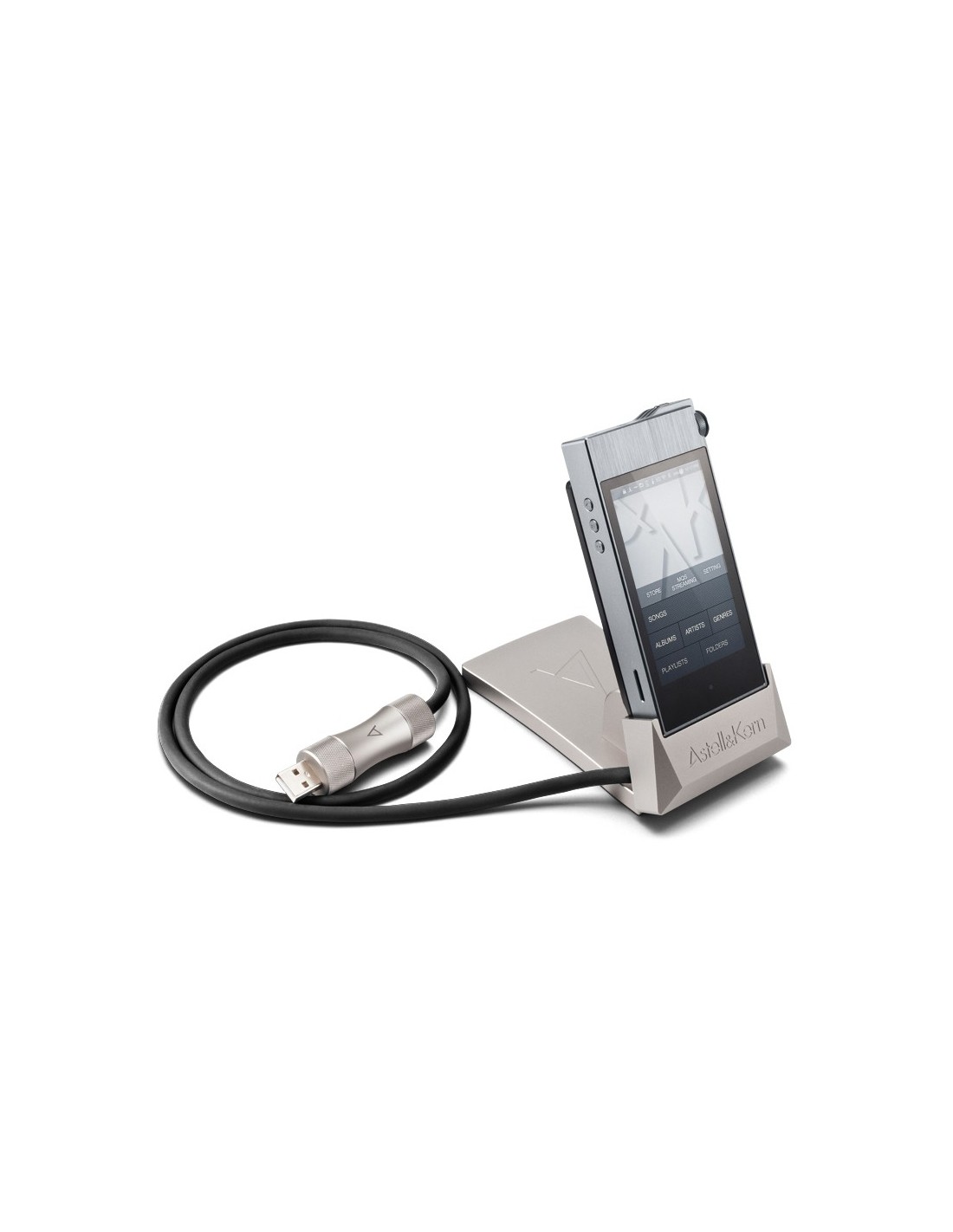 Base di ricarica e trasferimento dati per riproduttori DAP AK100II e AK120II. Collegamento in uscita con cavo in rame oxigen free USB. Angolazione variabile su 5 posizioni.