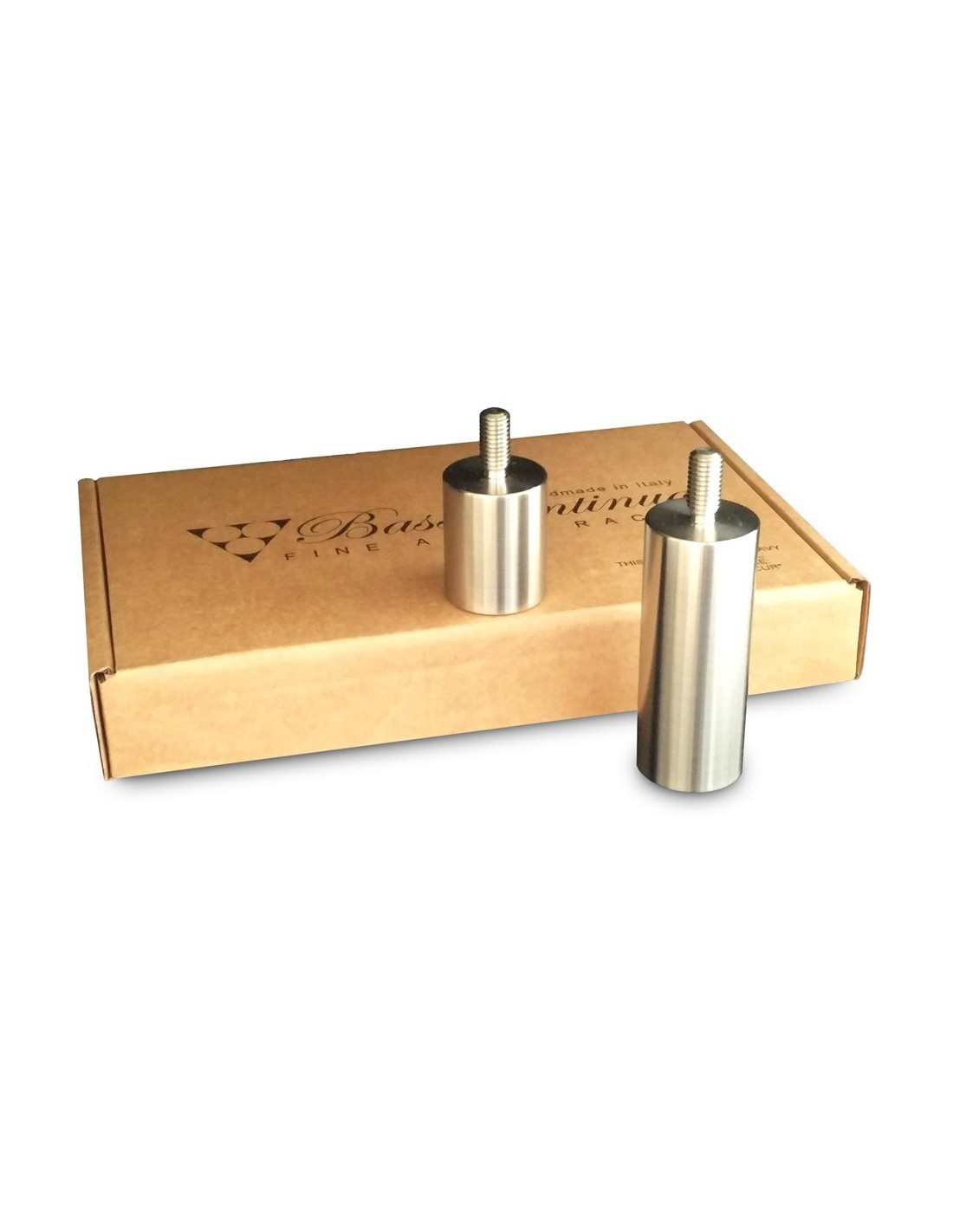 Kit da 4 moduli cilindrici di altezza 100 mm in acciaio inox satinato tornito dal pieno con lavorazione a controllo numerico CNC, dedicati ai rack Revolution AEON / AEON 2.0 / AEON X per variare l'altezza tra i ripiani
