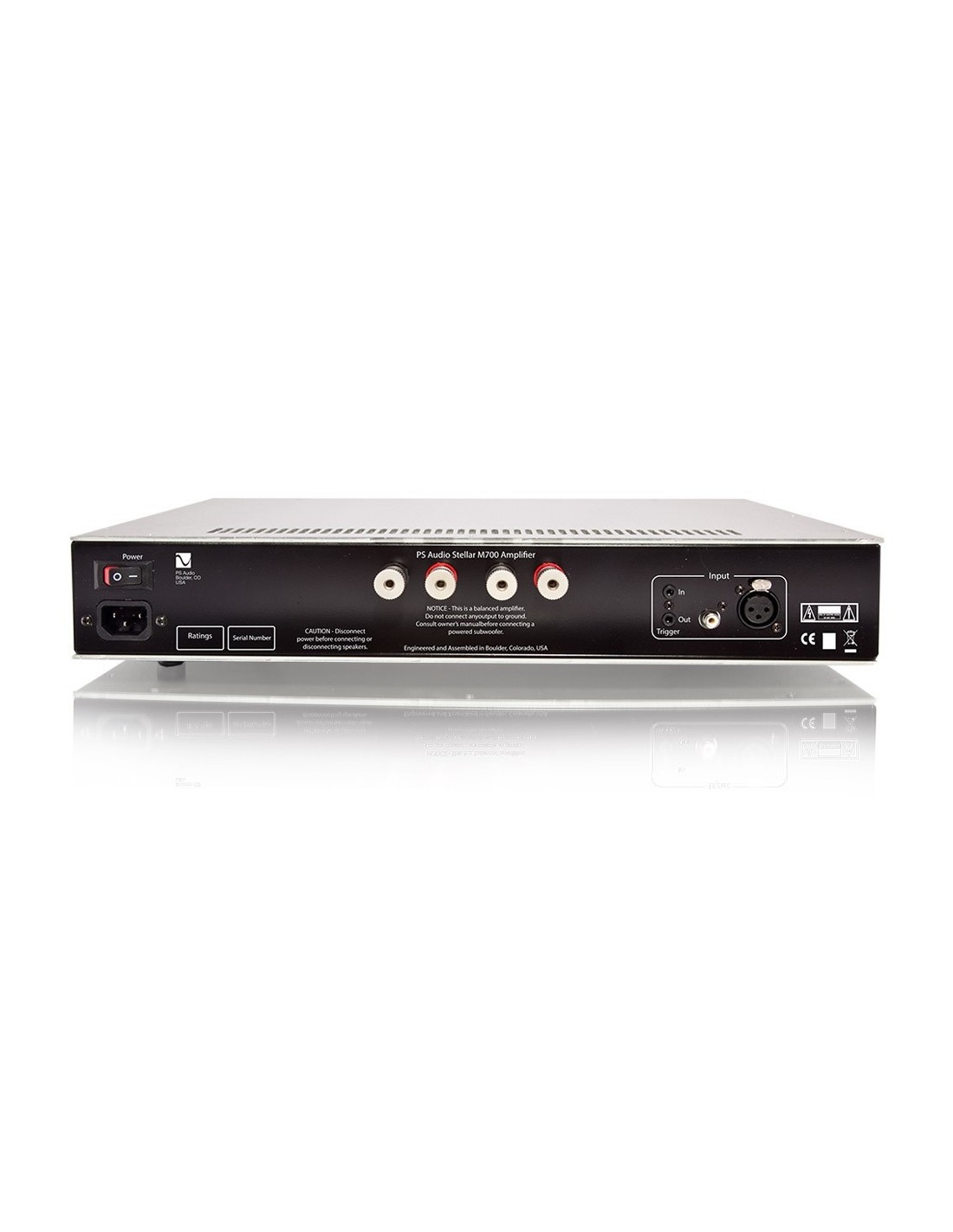 AMPLIFICATORE FINALE DI POTENZA MONOFONICO DA 700 WATT SU 4 OHM / 340 WATT SU 8 OHM - STADIO D'INGRESSO PROPRIETARIO ANALOG CELL A MOSFET, COMPLETAMENTE BILANCIATO, IN CLASSE A, SENZA CONTROREAZIONE - STADIO D'USCITA AD ALTA CORRENTE, DISTORSIONE INFINITESIMALE, LINEARITA` ASSOLUTA ED ELEVATISSIMA EFFICIENZA, BASATO SU MODULI IN CLASSE D ICE POWER - FATTORE DI SMORZAMENTO (50 HZ / 2,8 VRMS) SUPERIORE A 1100 SU 8 OHM E 550 SU 4 OHM - INGRESSO BILANCIATO XLR E SBILANCIATO RCA - TRIGGER IN / OUT - PROGETTATO, ASSEMBLATO E TESTATO NEGLI STATI UNITI PRESSO GLI STABILIMENTI PS AUDIO DI BOULDER, COLORADO - DIMENSIONI (L X A X P) 432 X 77 X 333 MM - PESO 5,9 KG - FINITURA SILVER (ARGENTO)