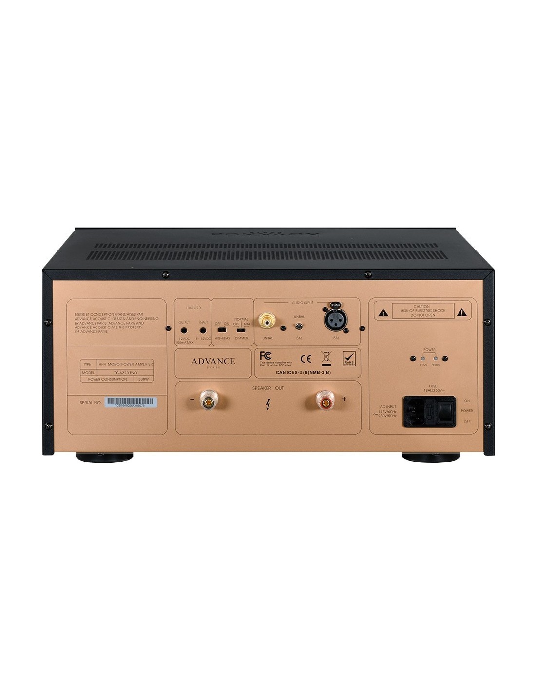 AMPLIFICATORE FINALE DI POTENZA MONOFONICO A STATO SOLIDO - POTENZA 220 WATT RMS SU 8 OHM E 350 WATT RMS SU 4 OHM - COMMUTATORE HIGH BIAS PER FUNZIONAMENTO ANALOGO ALLA CLASSE A NELL'EROGAZIONE DEI PRIMI WATT - COSTRUZIONE SENZA COMPROMESSI CON COMPONENTI AUDIOPHILE SELEZIONATI - CHASSIS ULTRA RIGIDO IN ACCIAIO CON SUDDIVISIONE INTERNA IN SCOMPARTI INDIPENDENTI E ISOLATI, PANNELLO FRONTALE IN ELEGANTE METACRILATO DI ELEVATO SPESSORE - STADIO DI POTENZA CON 8 TRANSISTOR AD ALTA CORRENTE NJW0281G / NJW0302G IN CONFIGURAZIONE TRIPLO PUSH-PULL COMPLEMENTARE - STADIO D'ALIMENTAZIONE CON TRASFORMATORE TOROIDALE DA 700 VA E 4 CONDENSATORI DI FILTRO DA 10,000 UF / 80 V - INGRESSI BILANCIATO XLR E SBILANCIATO RCA - OUTPUT VU-METER - TRIGGER IN E OUT - RISPOSTA IN FREQUENZA 10 HZ - 80 KHZ - DISTORSIONE ARMONICA TOTALE (THD) INFERIORE ALLO 0,08% - RAPPORTO SEGNALE/RUMORE (S/N RATIO) SUPERIORE A 100 DB - DIMENSIONI (L X A X P) 430 X 200 X 450 MM - PESO 21 KG