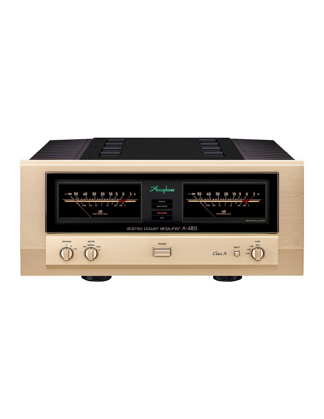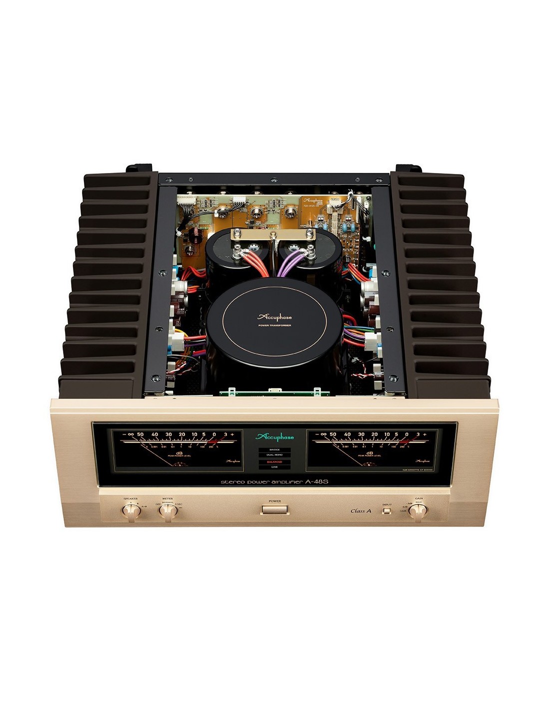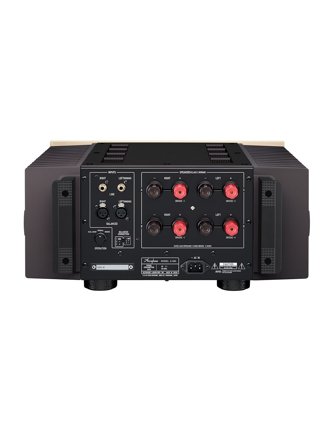 Amplificatore finale di potenza stereofonico a stato solido in pura Classe A completamente bilanciato;