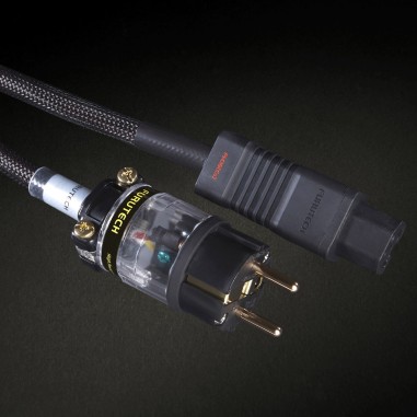 POWER CABLE DEDICATED TO HOME CINEMA ELECTRONICS, VIDEO PROJECTORS AND DIGITAL SOURCES - MIXED MULTI-STRAND CONDUCTORS OF PUREST SILVER-PLATED OFC COPPER AND OFC COPPER TREATED WITH ALPHA CRYOGENIC AND DEMAGNETIZING PROCESS - IEC FI-C15 CU RECEPTACLE AND FI-E11 CU SCHUKO PLUG WITH UNPLATED COPPER CONDUCTORS - AUDIO GRADE POLYETHYLENE DIELECTRIC - DAMPING COTTON YARN INNER FILLING WITH PAPER TAPE BARRIER - SPECIAL AUDIO GRADE FLEXIBLE PVC OUTER SHEATH - NYLON BRAID SHEATHING - TOTAL DIAMETER APPROX. 10,8 MM - LENGTH 1.8 METERS