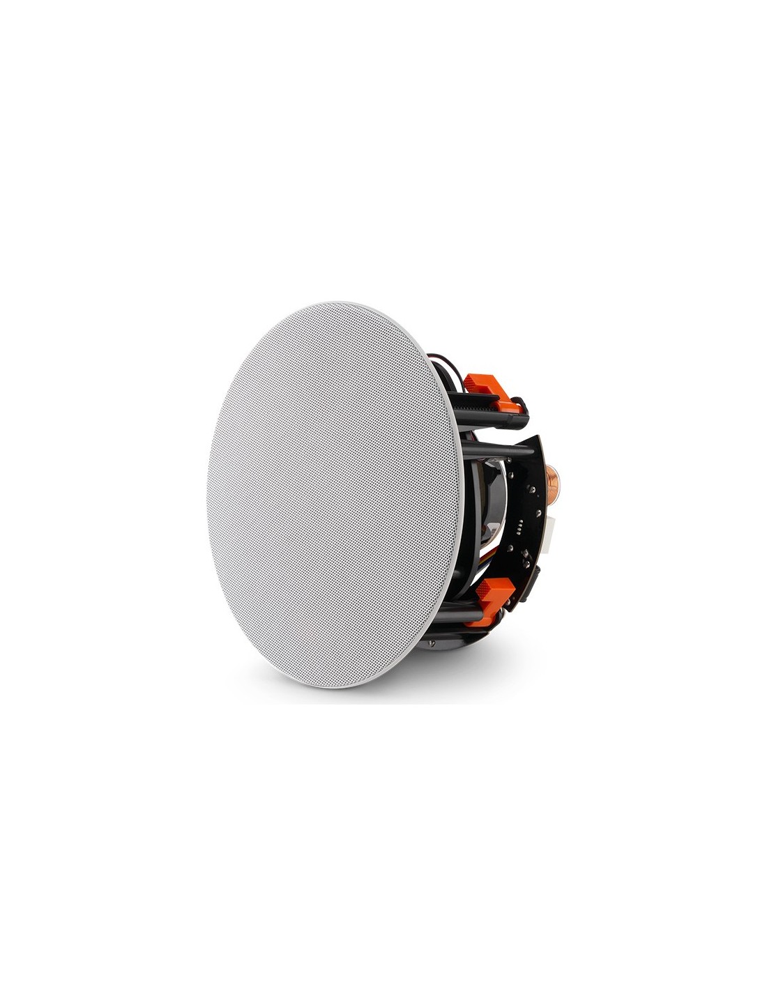 Diffusore da incasso a soffitto di forma rotonda, 2 vie, 1 tweeter orientabile da 25mm con cupola in CMMDTM, 1 Bass/Midrange da 165mm con cono in Polyplas®, controllo degli alti +/-3dB, 86dB, 80W RMS, 8 ohms, ampia dispersione sonora, diametro incasso 203mm, profondità di montaggio 119mm, semplice installazione con XL-2 Bracket, griglia magnetica e finitura bianca verniciabile.