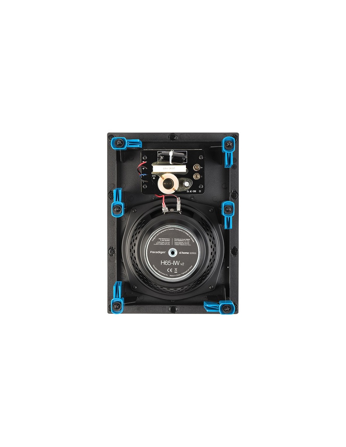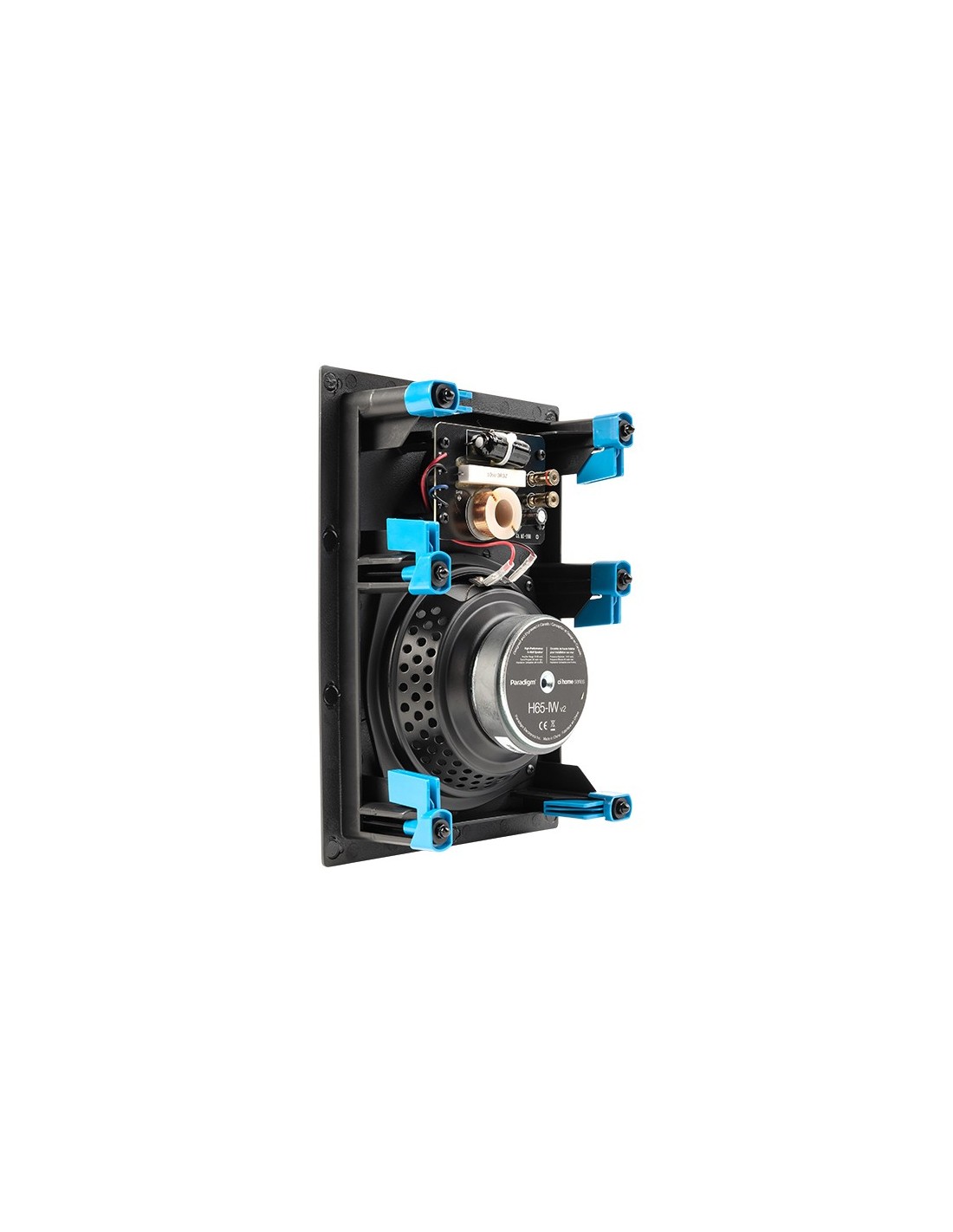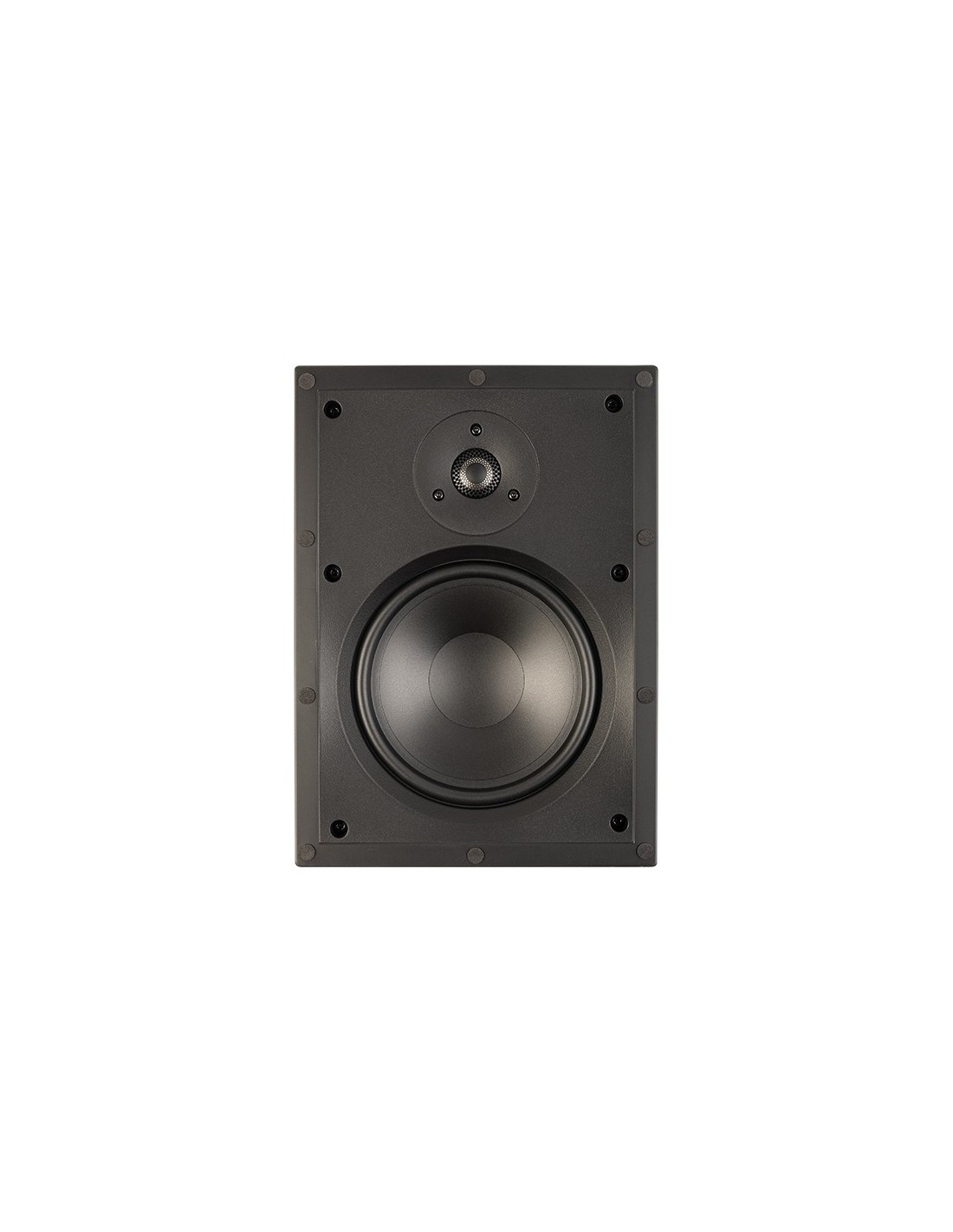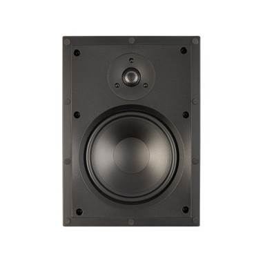 Diffusore da incasso in parete o in soffitto, 2 vie, 2 driver, 1 tweeter da 19mm con lente acustica ad allineamento di fase PPA, 1 Bass / Midrange da 165mm con cono in polipropilene, 89dB, 15-90W, 8 ohms, rettangolo incasso 25,7x18cm, morsetti dorati per i cavi che accettano anche connettori a banana, griglia magnetica bianca verniciabile, alette di montaggio integrate.