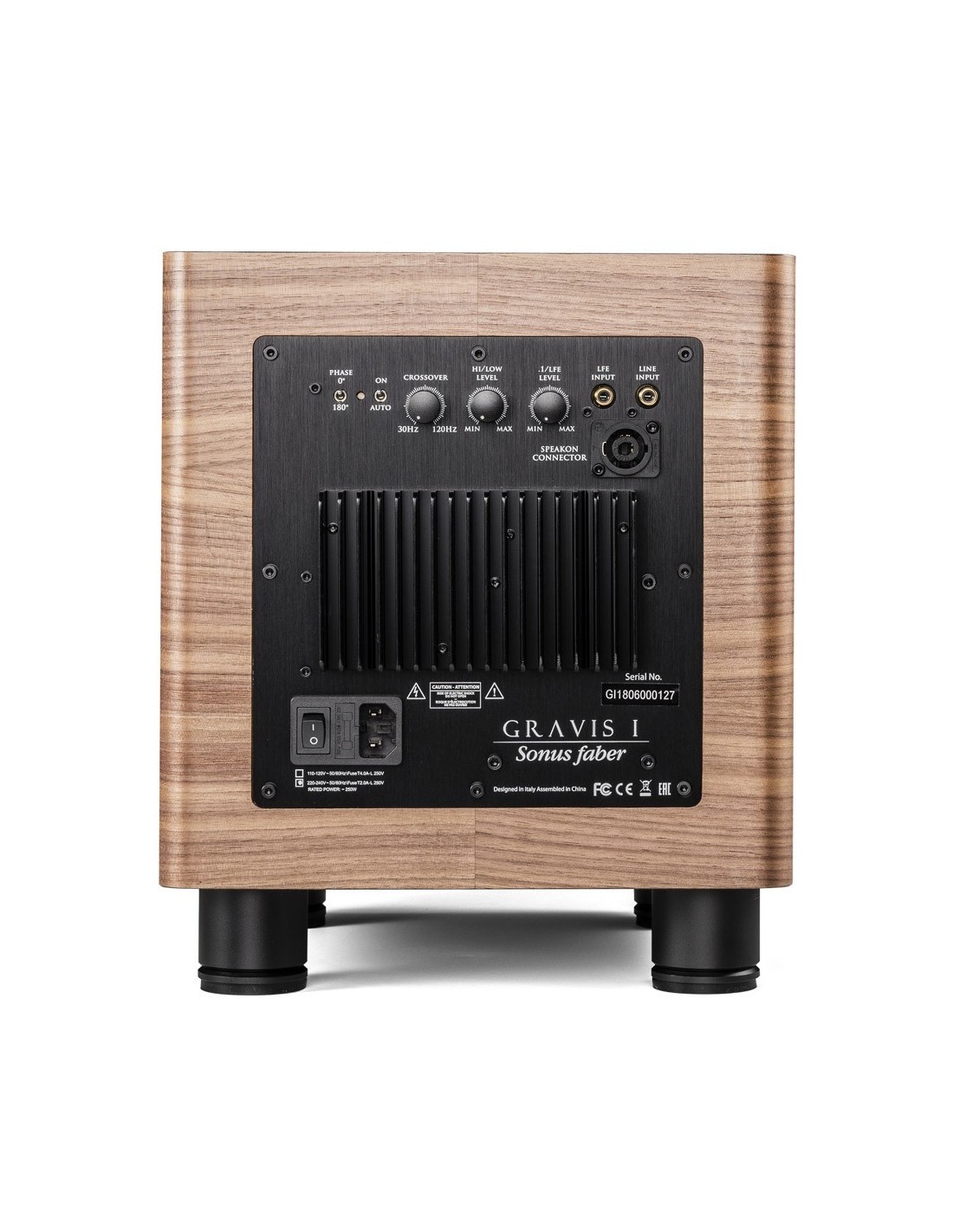 SUBWOOFER ATTIVO IN CASSA CHIUSA CON EMISSIONE A PAVIMENTO, COMPLEMENTO IDEALE DELLA SERIE SONETTO - AMPLIFICATORE INTEGRATO IN CLASSE AB DA 150 WATT RMS (250 WATT PICCO) - WOOFER DA 8 POLLICI (200 MM) A LUNGA ESCURSIONE CON MEMBRANA IN CARTA TRATTATA - RISPOSTA IN FREQUENZA 30 HZ (-6 DB) - FC CON CROSSOVER VARIABILE - FUNZIONE DI AUTOSPEGNIMENTO (DISATTIVABILE) - CONTROLLO DI INVERSIONE FASE - INGRESSI LFE (RCA) E MASTER, LINE LEVEL (RCA) E HIGH/SPEAKER LEVEL (SPEAKON), CON REGOLAZIONI INDIPENDENTI E SFRUTTABILI SIMULTANEAMENTE - CAVO DI CONNESSIONE HIGH LEVEL SPEAKON IN DOTAZIONE - FINITURA WOOD (LEGNO DI NOCE) CON TOP RIVESTITO IN PELLE NATURALE CUCITA A MANO - DIMENSIONI (L X A X P) 286 X 334 X 316 MM - PESO 14,5 KG