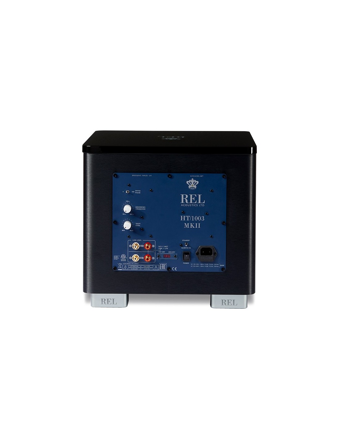 Subwoofer amplificato Serie Home Theater in sospensione pneumatica. Nuovo Woofer frontale a lunga escursione da 25cm con cono in fibra di vetro e cupola invertita in fibra di carbonio. Potenza 300W con amplificazione NextGen5 in classe D. Regolazione del volume e della frequenza di taglio del xover. Fase 0-180°. Possibilità di renderlo wireless attraverso l'adattatore esterno opzionale HT Air Wireless. Ingressi stereo RCA e LFE RCA separato. Dimensioni del cabinet (LxAxP): 31,8x34,7x35,1cm. Nuova elegante finitura: Top superiore nero laccato e lati in nero spazzolato.