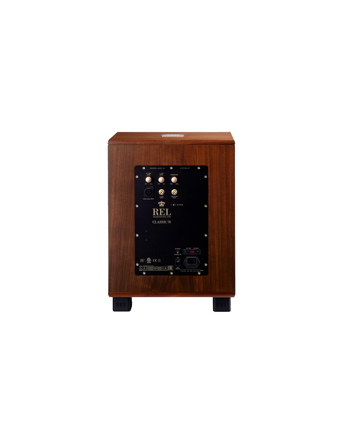 Il nuovo Classic 98 si discosta molto dal classico suono REL; è stato progettato per offrire un suono leggermente più morbido rispetto agli altri subwoofer in catalogo. I bassi più che sulla velocità, agiscono sulla saturazione dell'ambiente. La parziale rinuncia della velocità e della intelligibilità del basso, lasciano posto al calore di un suono invitante. Il Classic 98 vi invita a mettere su un disco, a versarvi una bevanda cara, a sdraiarvi su una sedia comoda e a rilassarvi con la musica. La sua classica impiallacciatura in noce naturale e lo stile moderno di metà secolo si adattano a un'ampia gamma di arredi. È anche facile da posizionare e da usare. Un recensore lo ha giustamente definito "l'ultimo piacere colpevole dell'audiofilo".