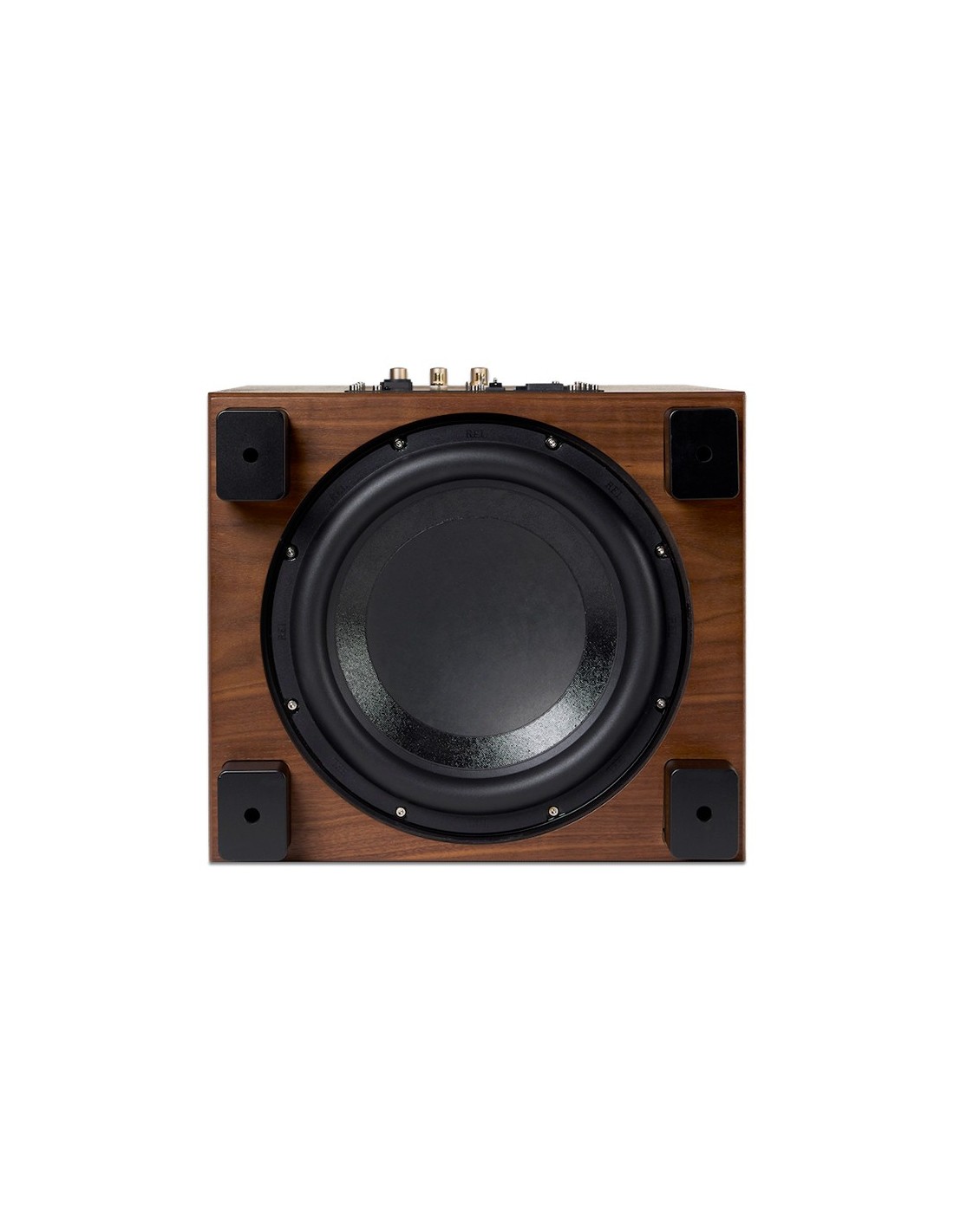 Subwoofer amplificato in sospensione pneumatica dal look vintage. Woofer a lunga escursione da 30cm con cono in cellulosa a cupola invertita e cestello in acciaio. Emissione a pavimento. Potenza 450W in classe D. Regolazione del volume e della frequenza di taglio del xover. Fase 0-180°. Possibilità di renderlo wireless attraverso gli adattatori esterni opzionali AirShip II o HT Air MKII Wireless. Ingressi: stereo RCA, LFE RCA separato e Neutrik ad alto livello. Dimensioni del cabinet (LxAxP): 40x53,4x35cm. Finitura vintage in legno di noce con venature.