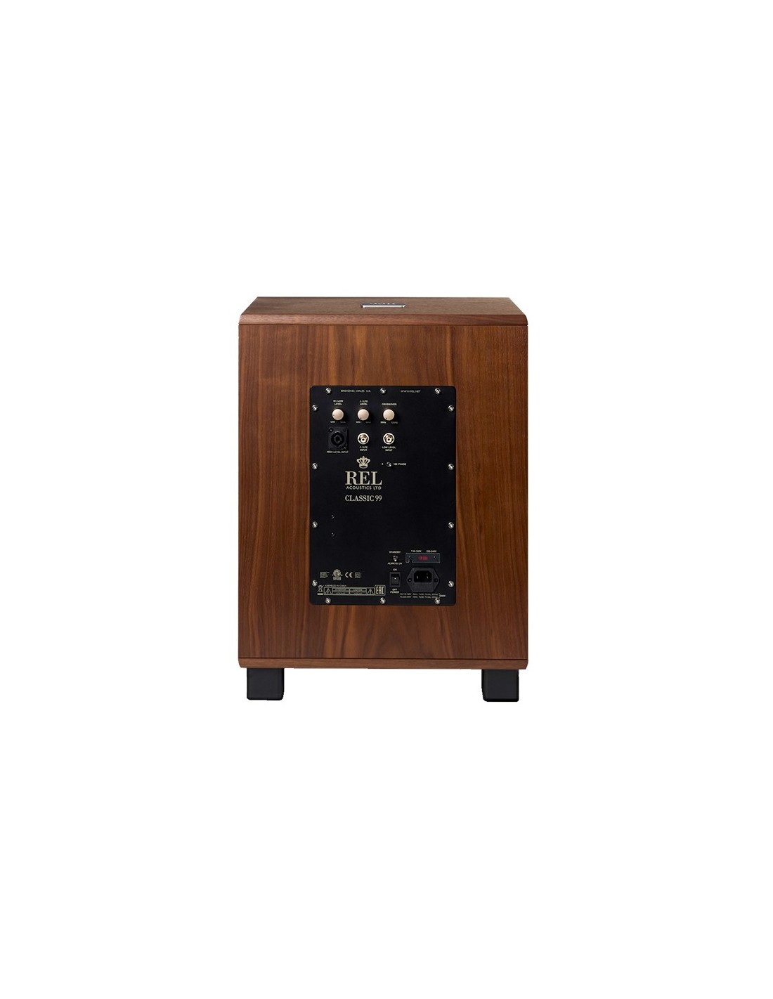 Il subwoofer Rel Classic 99 si basa sugli ottimi risultati ottenuti dal Classic 98, che ha ridato vita al classico vintage nella categoria subwoofer. Tuttavia, questo Classic 99 è più grande del 40% in termini di volume e dispone di un nuovo amplificatore in Classe D da 450 watt, con PerfectFilter completamente analogico, che pilota un robusto driver con cono in polpa di cellulosa da 30 cm, con un'escursione di ben 51 mm, che irradiamento a pavimento. Il cono formato da vari strati di cellulosa pressati a caldo, risulta leggero per la massima velocità di movimento, ma allo stesso tempo rigido per evitare deformazioni ad alta potenza. Il cabinet ha pareti di 32 mm di spessore, un'impiallacciatura in noce naturale. Tutti questi elementi combinati tra di loro danno vita ad un'esperienza sonora in bassa frequenza, profonda, audace e piena di carattere, offrendo un suono caldo, affidabile, da primo della classe.