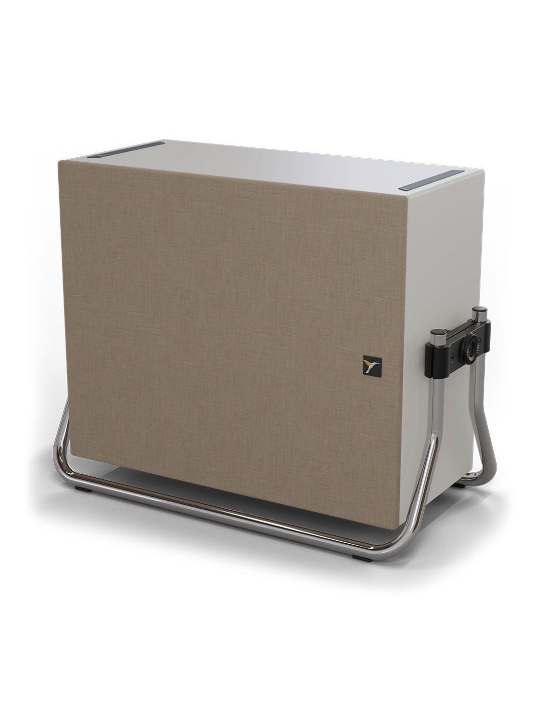 - 120 Hz - finitura Grey-White: cabinet bianco-grigio satinato, griglia in tessuto beige naturale;