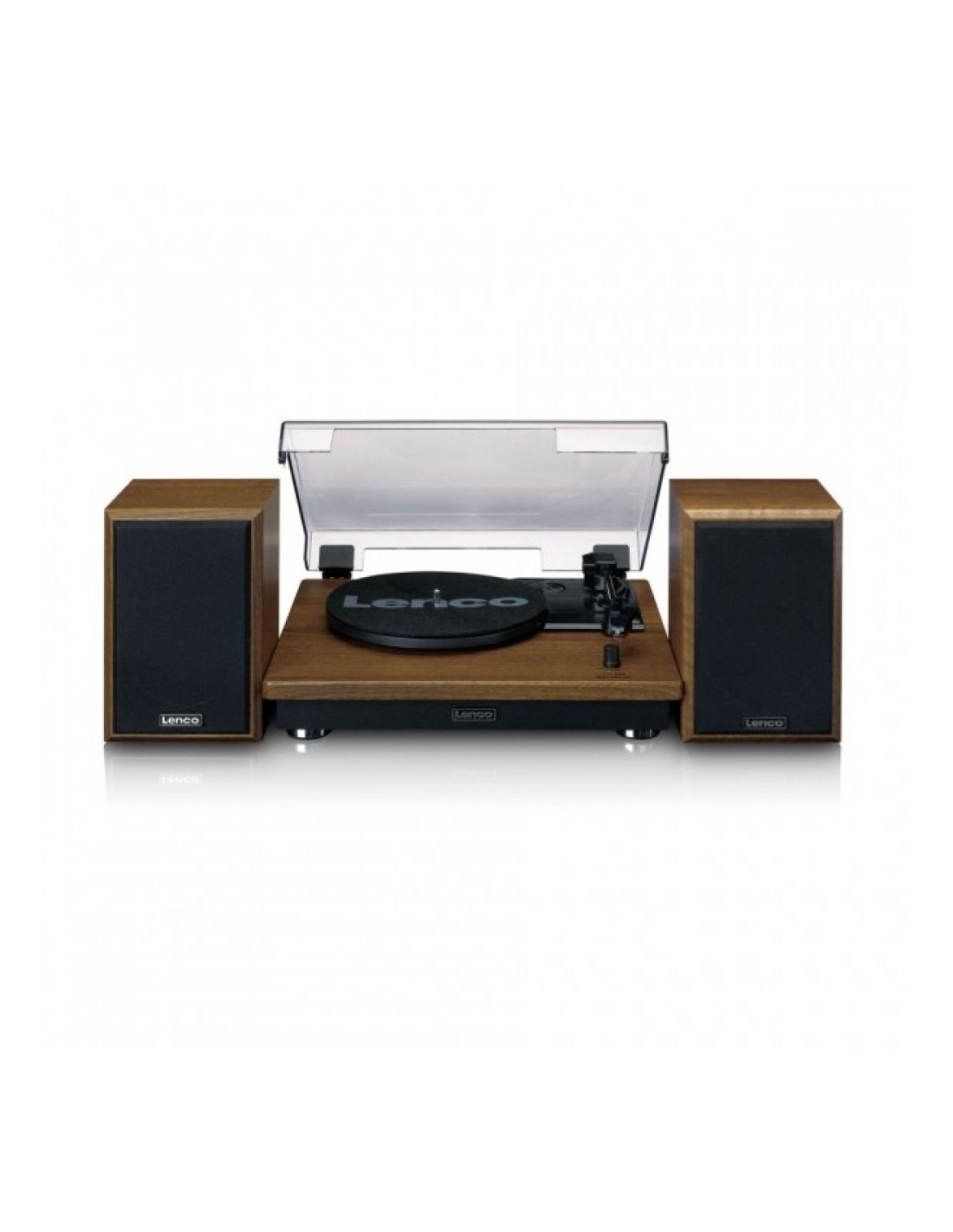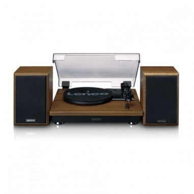 Giradischi amplificato a 3 velocità (33/45/78) con BluetoothAmplificatore stereo integrato 10 W x 2Testina MM in ceramicaDiffusori acustici separati in MDFTrazione a cinghia e stop automaticoCoperchio giradischi removibile