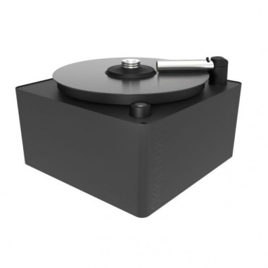 Funzionamento a singolo tasto, piatto bidirezionale da 12", secondo piatto di ridotte dimensioni per 45 giri o dischi particolarmente sporchi, clamp in acciaio inox con protezione etichetta e adattatore per 45 giri, indicatore livello di liquido aspirato nel serbatoio, braccio con selettore per dischi da 7, 10 e 12 pollici, coperchio in acrilico trasparente, spazzola in legno con setole in pelo di capra, concentrato per un litro di liquido per la pulizia.